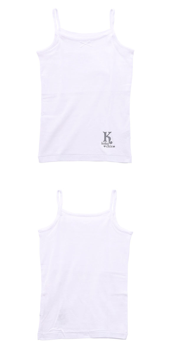 衿もとにリボンのついたシンプルデザイン。裾部分のロゴがアクセントに。同色の2枚セットなのでデイリーからスクールまで広く活躍します。胸元は裏打ちつきで、トップが目立ち始めたデリケートなバストをやわらかな素材でやさしくカバーします。