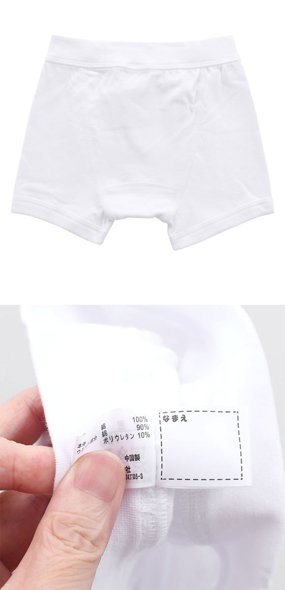 身生地はお肌に優しい綿100%を使用し、汗っかきなお子様のお肌にも安心です。横に伸縮性があり、ほどよく身体にフィット。内側にはお名前を書けるラベル付きです。