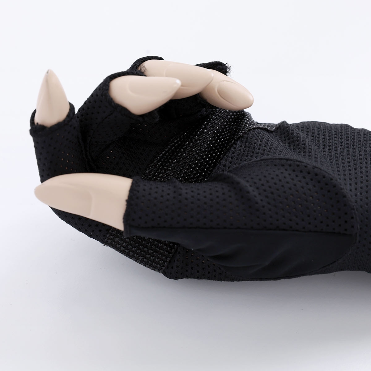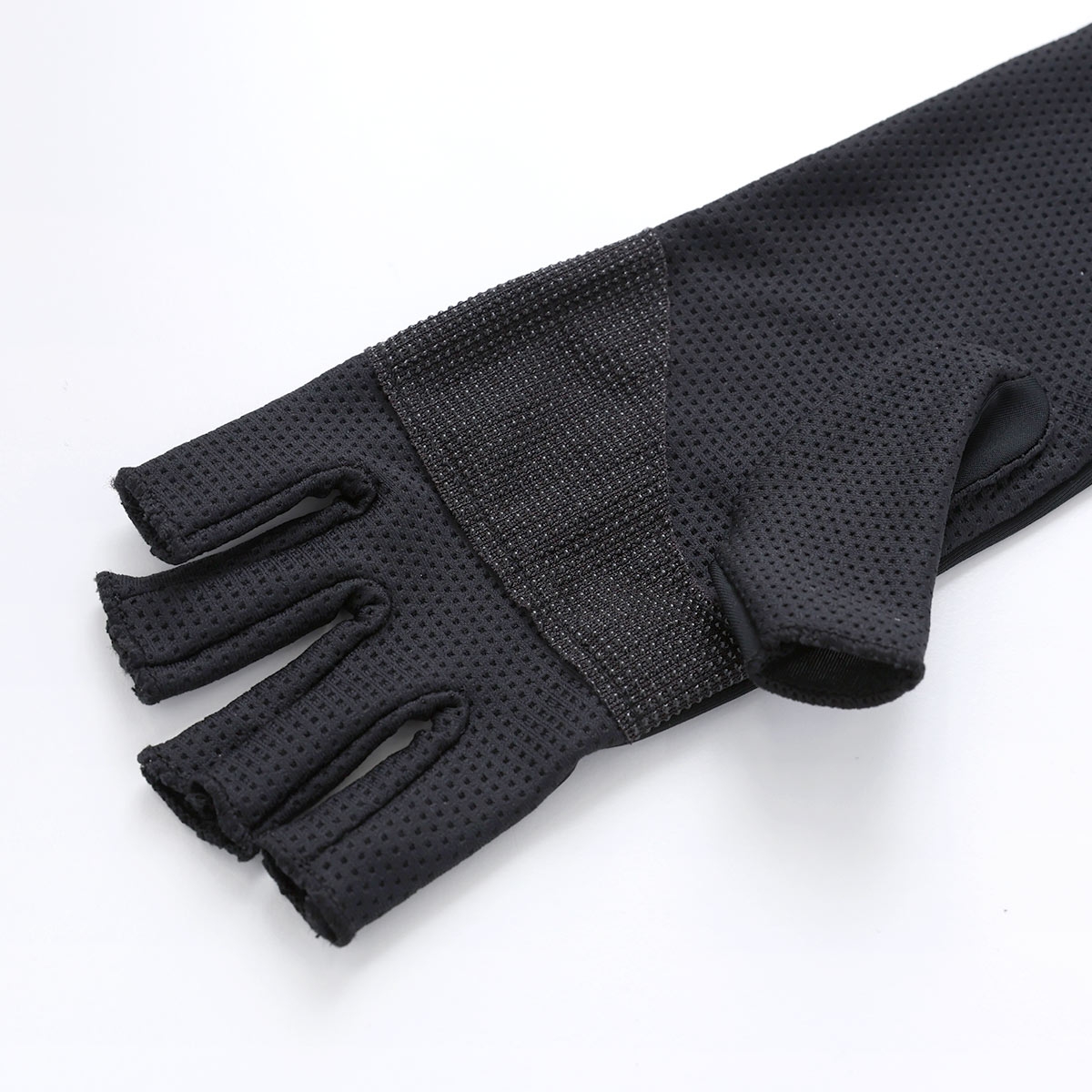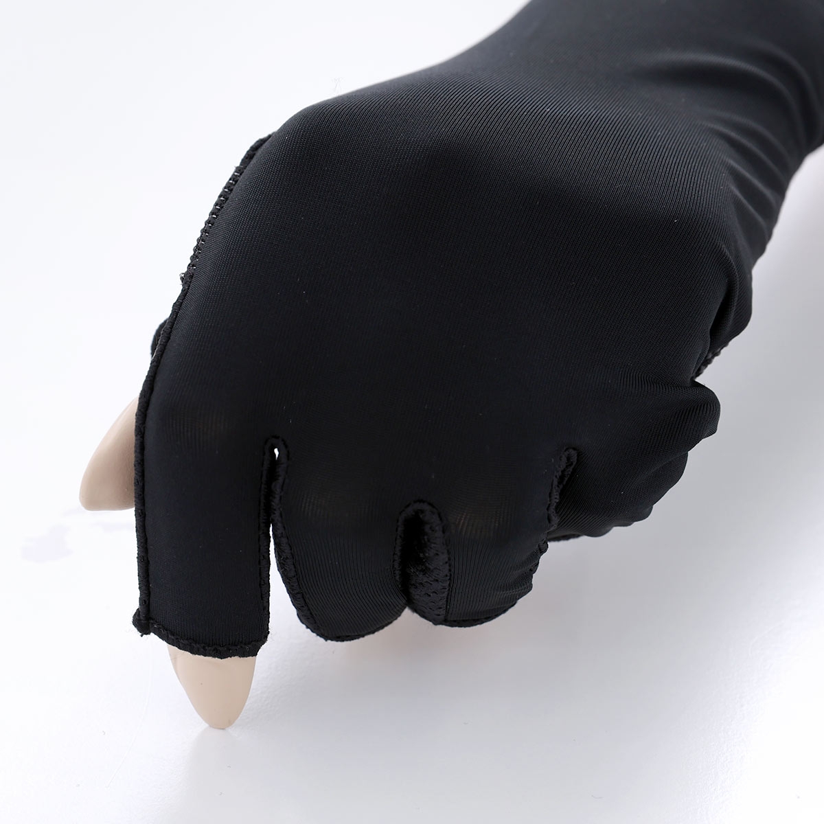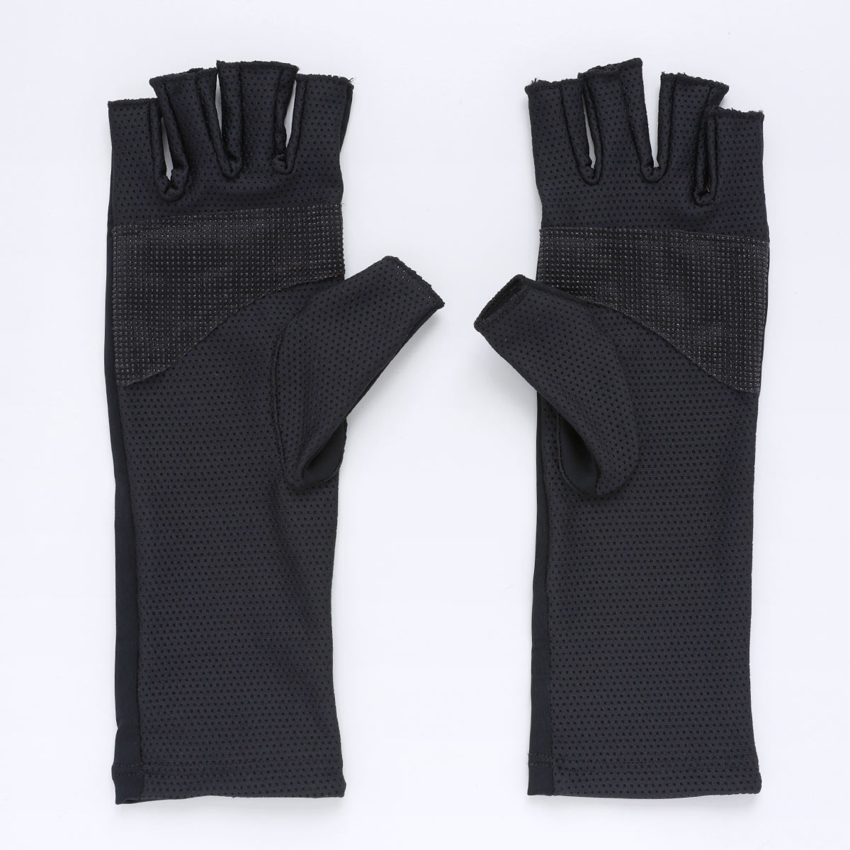 | 仕 様 | ・紫外線遮蔽率99%(※メッシュ部除く) ・ショート丈 ・指切りタイプ ・内側メッシュ生地 ・手のひらに滑り止め付き ・着用口にピタっとゴム入りでズレ落ちにくい設計 ・吸水速乾 ・冷感 |