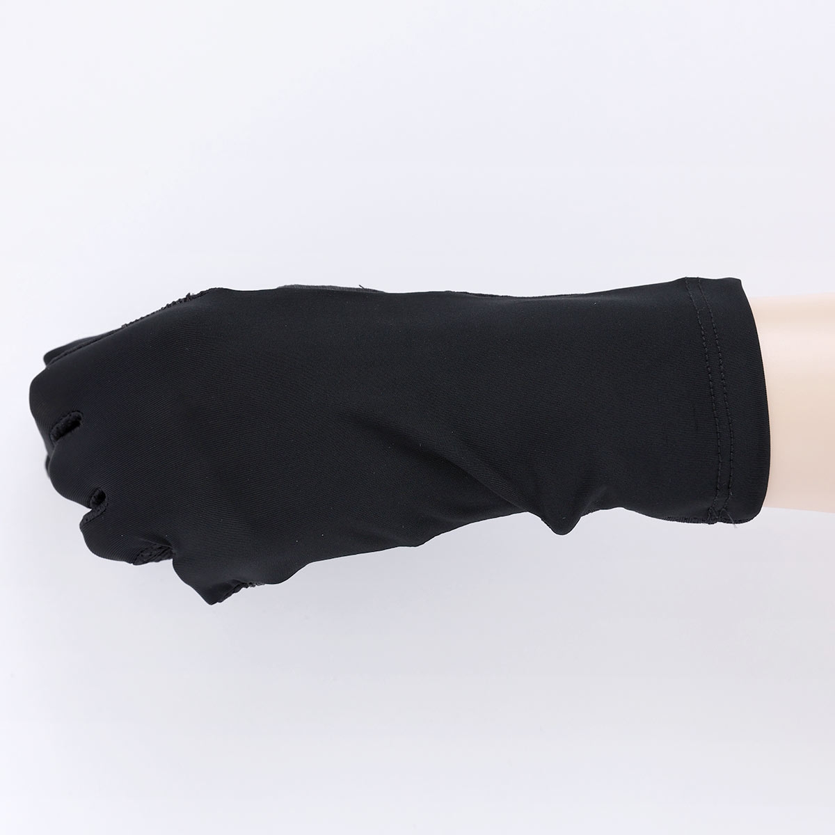 | 仕 様 | ・紫外線遮蔽率99%(※メッシュ部除く) ・ショート丈 ・手袋タイプ ・内側メッシュ生地 ・手のひらに滑り止め付き ・着用口にピタっとゴム入りでズレ落ちにくい設計 ・吸水速乾 ・冷感 |