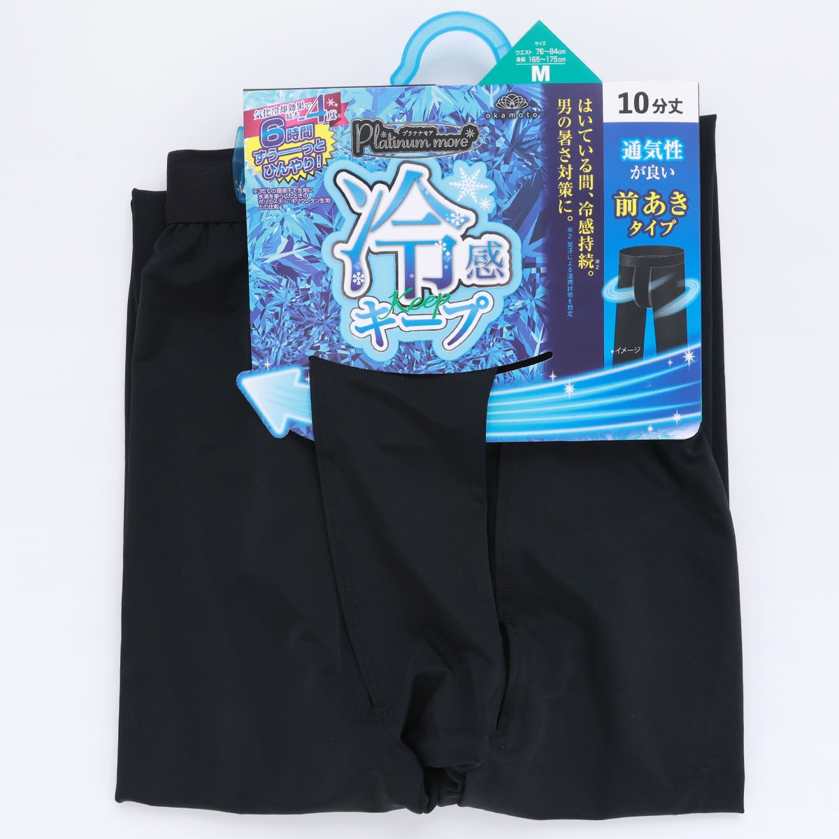 プラチナモア メンズレギンス ひんやり冷感キープ 前あき 通気性 吸水速乾 熱中症対策 夏用 作業用 スポーツ okamoto メンズ
