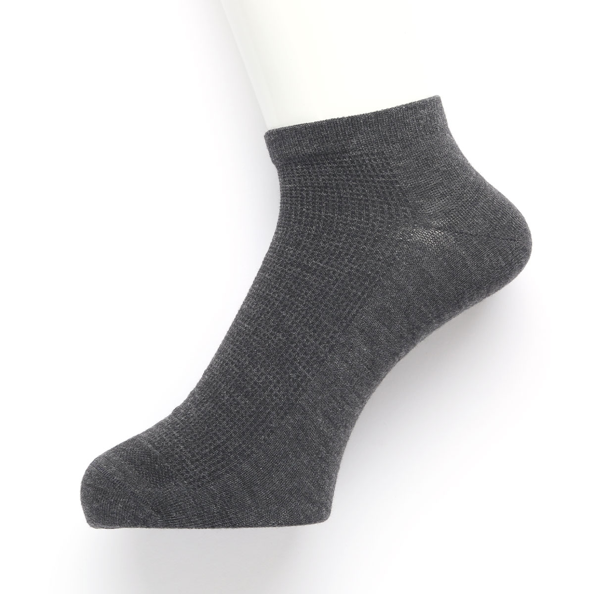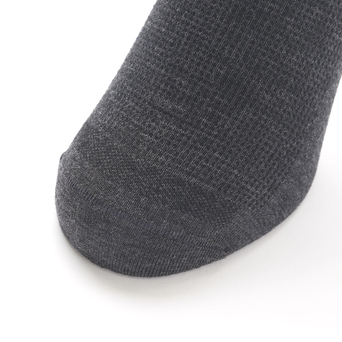 接触冷感とメッシュ構造により通気性UP!つま先とかかとに接触冷感生地を使用し、ひんやり快適な履き心地。