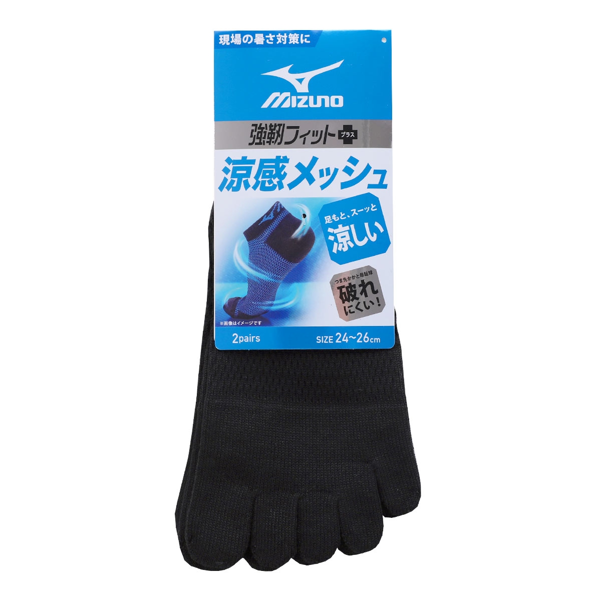 ミズノ ワークソックス 涼感メッシュ 5本指 ショート丈 2足セット 強靭 サポート メンズ 作業用 靴下 24-26cm 26-28cm MIZUNO WORK