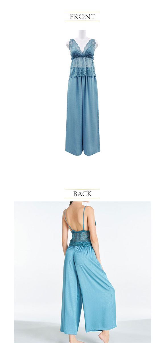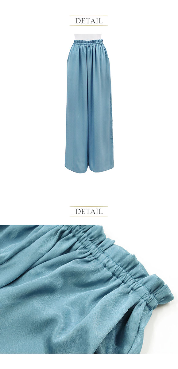 さりげないヘリンボーン模様の生地を使用したロングパンツセットアップ。トップスは透け感のあるレースで、フェミニンな雰囲気を演出。ボトムはワイドなシルエットなので、動きやすくもスタイリッシュな雰囲気を楽しめます。ウエストはゴム仕様なのでリラックスした履き心地。両サイドにポケットがついているのも嬉しいポイント。