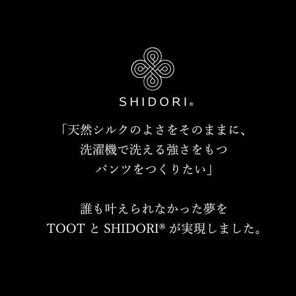 ご家庭で洗える天然シルクの上質なボクサーパンツ。シルク新素材『SHIDORI(R)』を使用し、家庭用洗濯機で洗っても色落ちや縮みが少なく、スパンシルクのふんわりした肌触りがずっと持続する特別な一品です。極上のはき心地をデイリーユースでお使いください。ギフトにもオススメです。