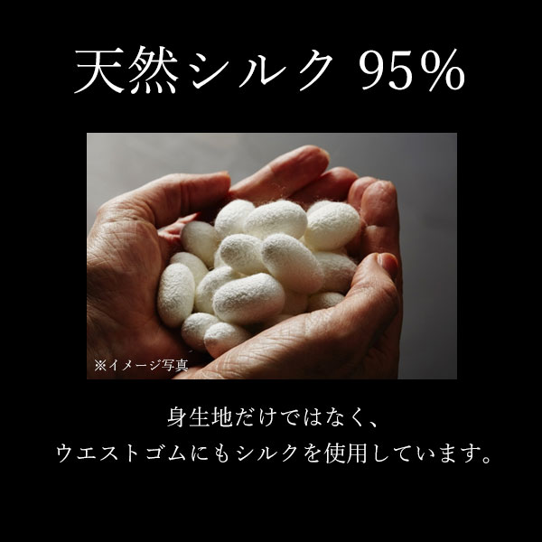 | 素 材 | 身生地:シルク95% ポリウレタン5% ウエストゴム:シルク63% ポリエステル20% ポリウレタン10% ナイロン7% |
