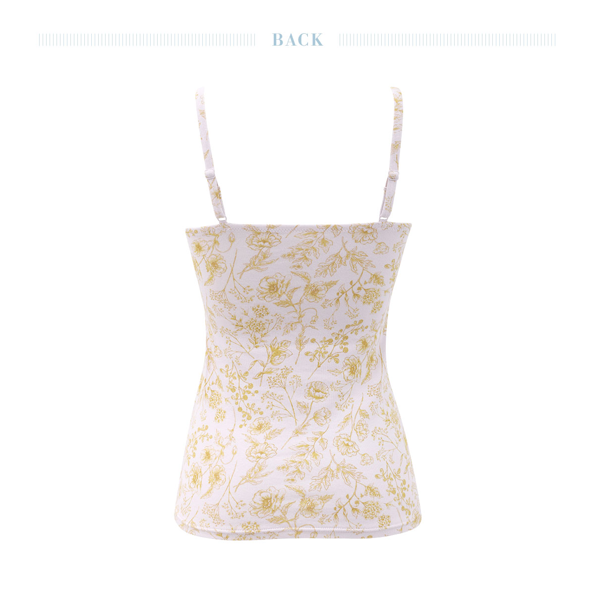 繊細な線画タッチの花柄が上品な華やかさを添えるカップ付きキャミソール。