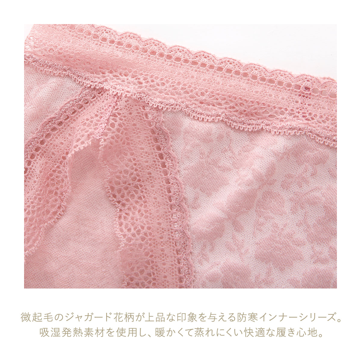 微起毛のジャガード花柄が上品な印象を与える防寒インナーのノーマルショーツ。