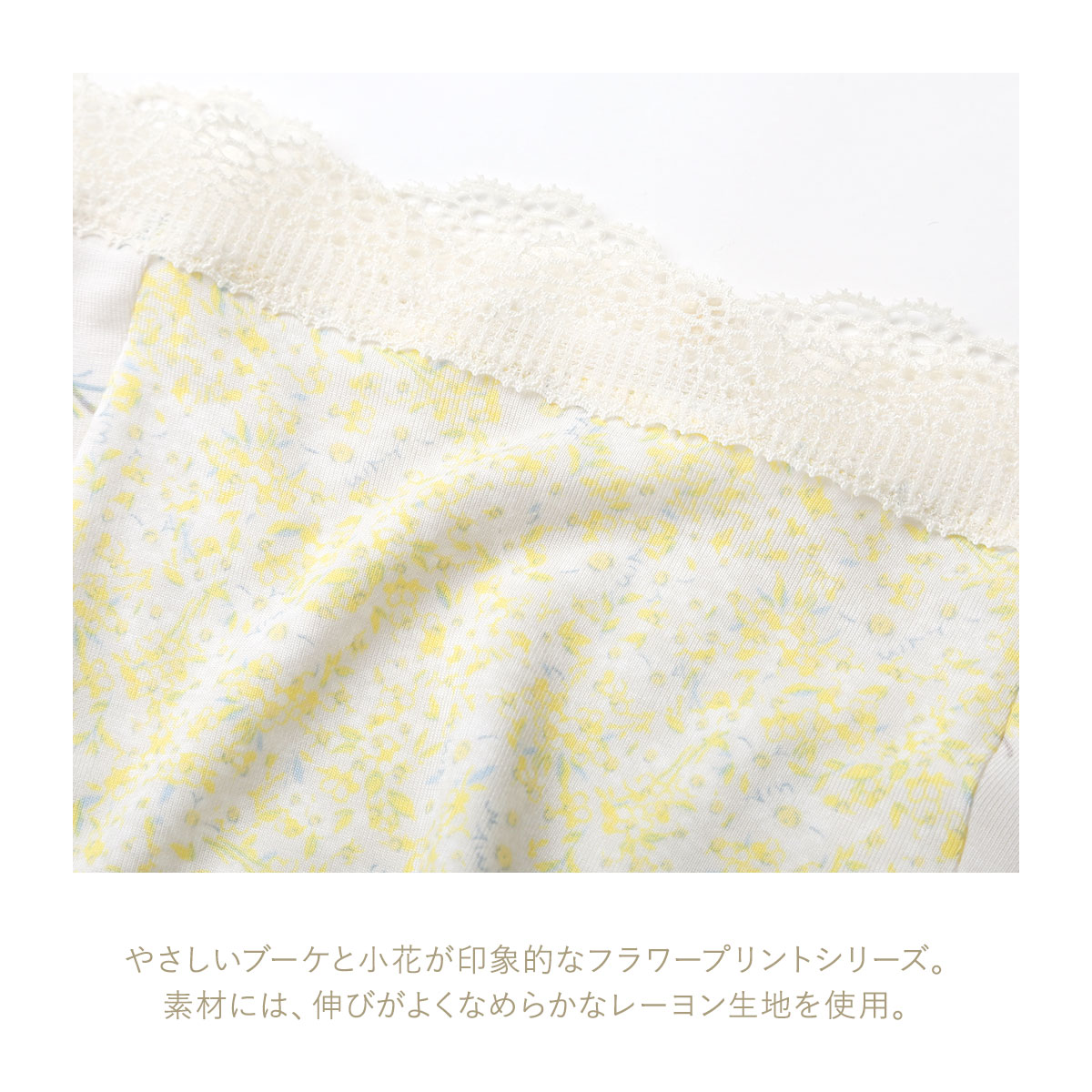 | 素 材 | 身生地:レーヨン94% ポリウレタン6% レース:ナイロン ポリウレタン 裏マチ:綿100% |