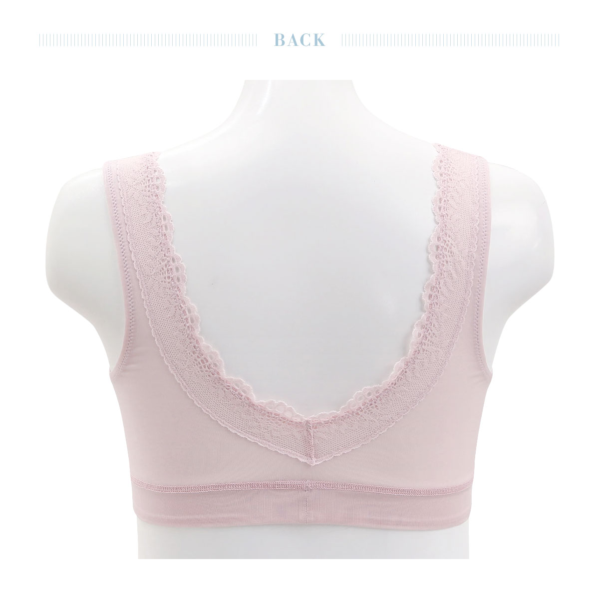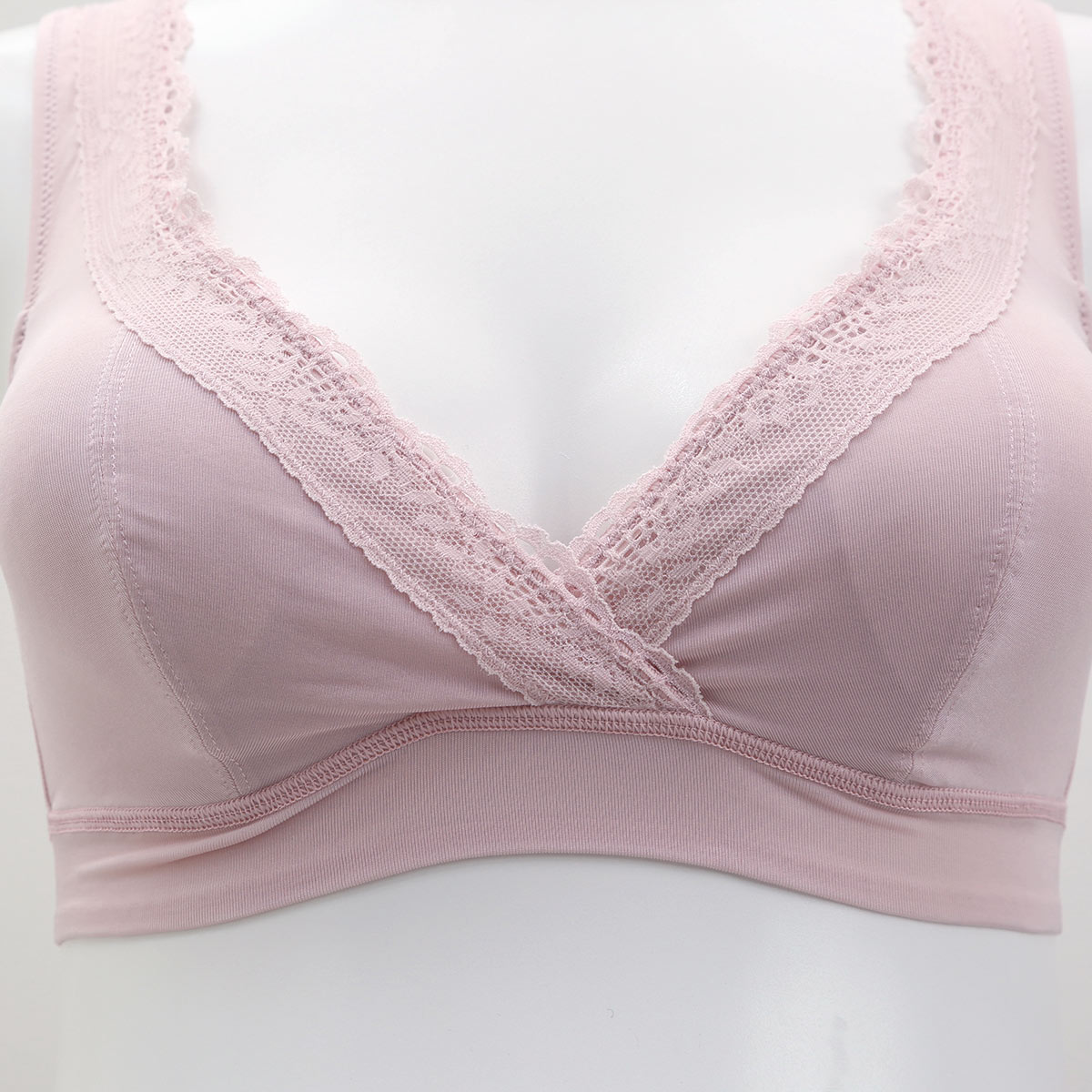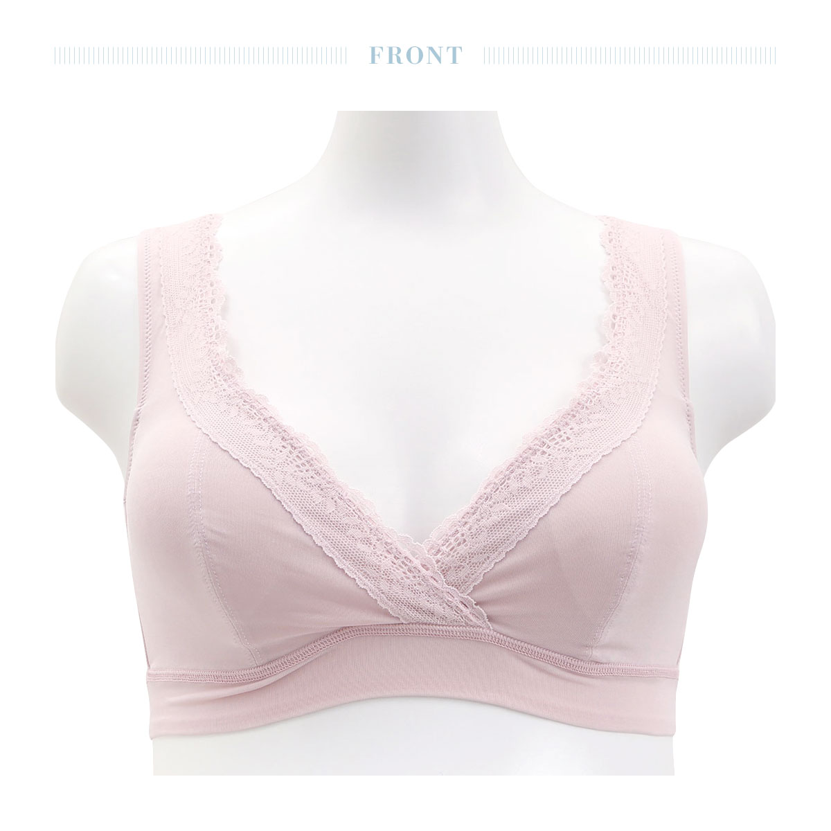 バストのフロント部分はカシュクールデザインを採用。妊娠期から産後まで、幅広い期間でご着用いただけます。大人っぽいダスティピンクと清潔感溢れるアイボリーの2色展開。体温の上がりやすい妊娠期にもベンベルグ素材はおすすめです。
