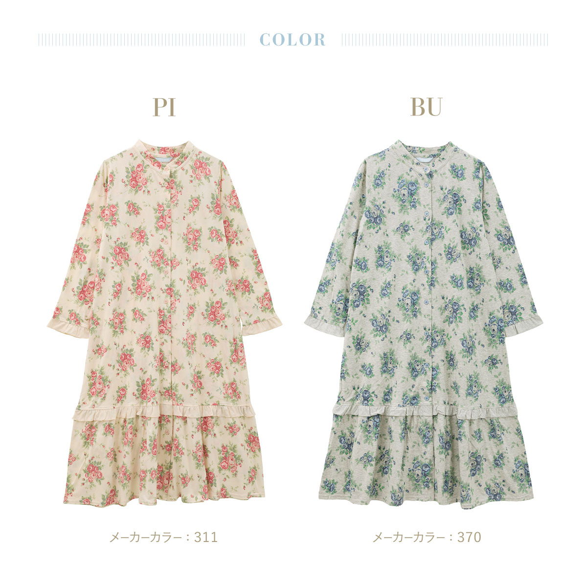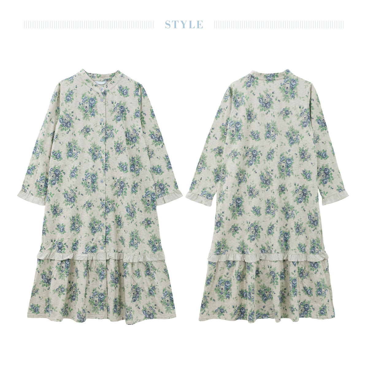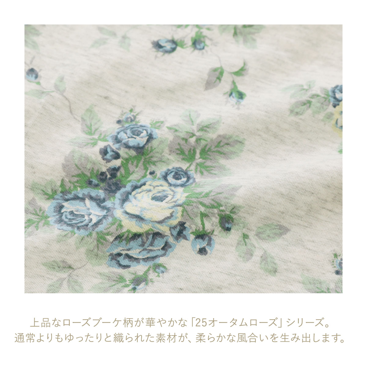 キッドブルーならではの上品なタッチで描かれたローズブーケ柄が華やかなナイトウェアシリーズ。綿100%で仕上げた、リラックス感のある優しい着心地です。