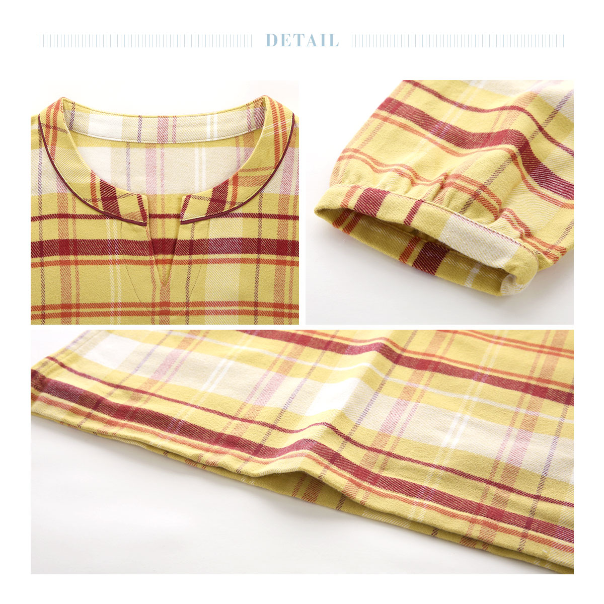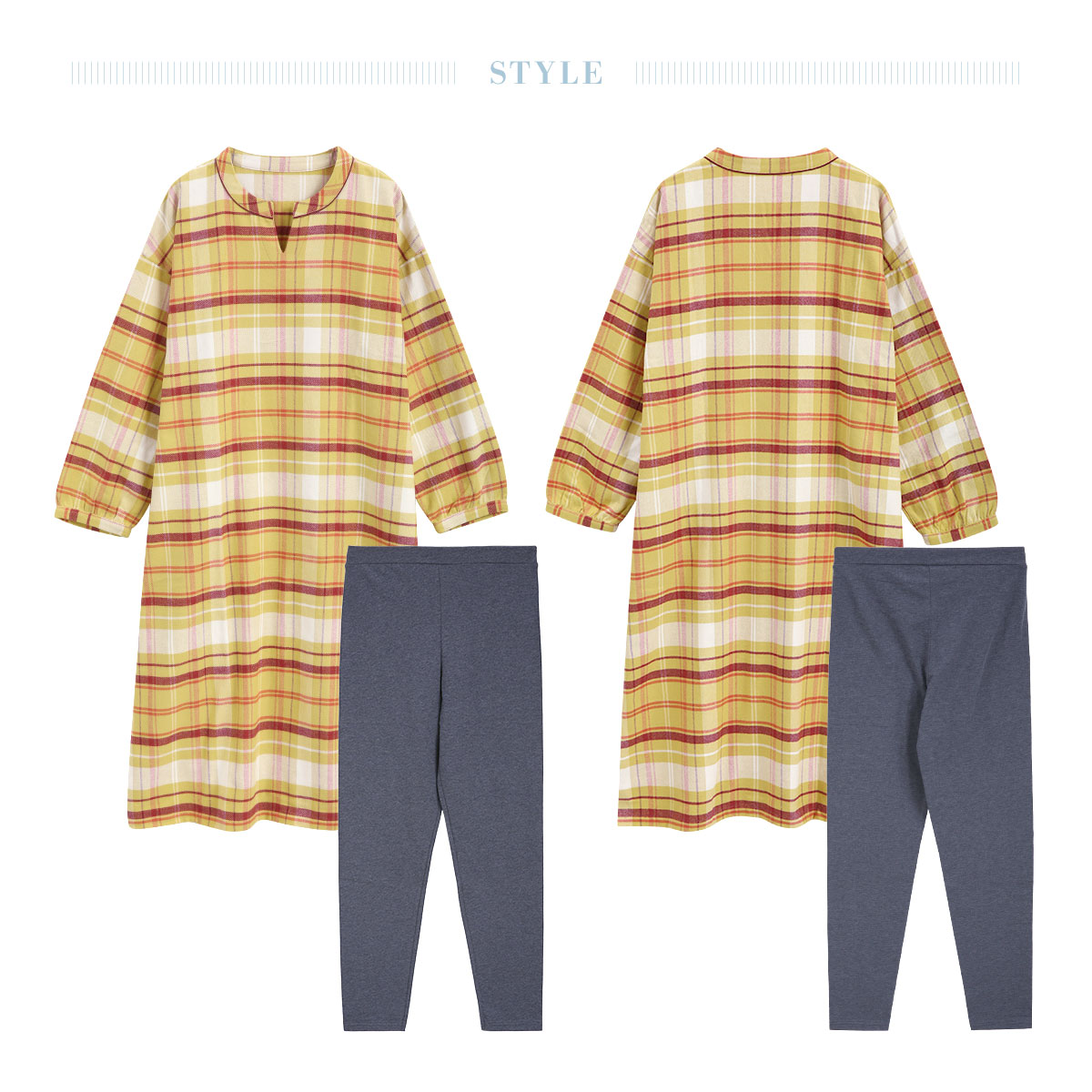 キッドブルーオリジナルのチェック柄ネル素材を使用したナイトウェア。ほどよい厚みとぬくもりがあり、椿オイル加工と裏起毛でふんわりとした優しい肌触りが心地よさをもたらします。