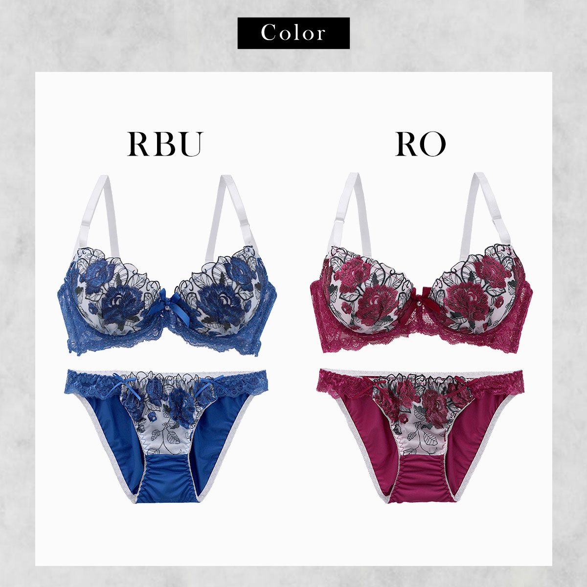 深い色合いが妖艶なムードを演出するローズとブルーの2色展開です。