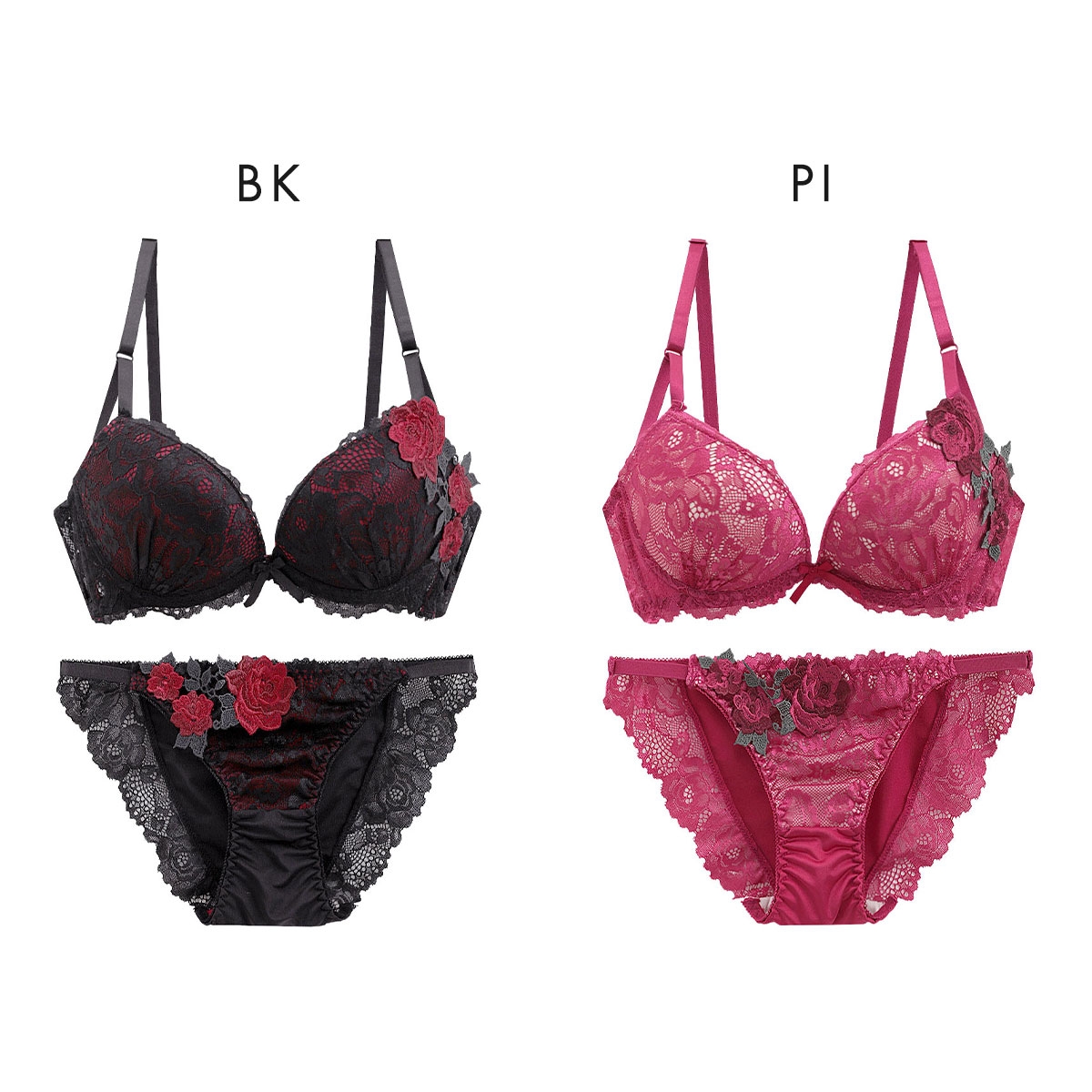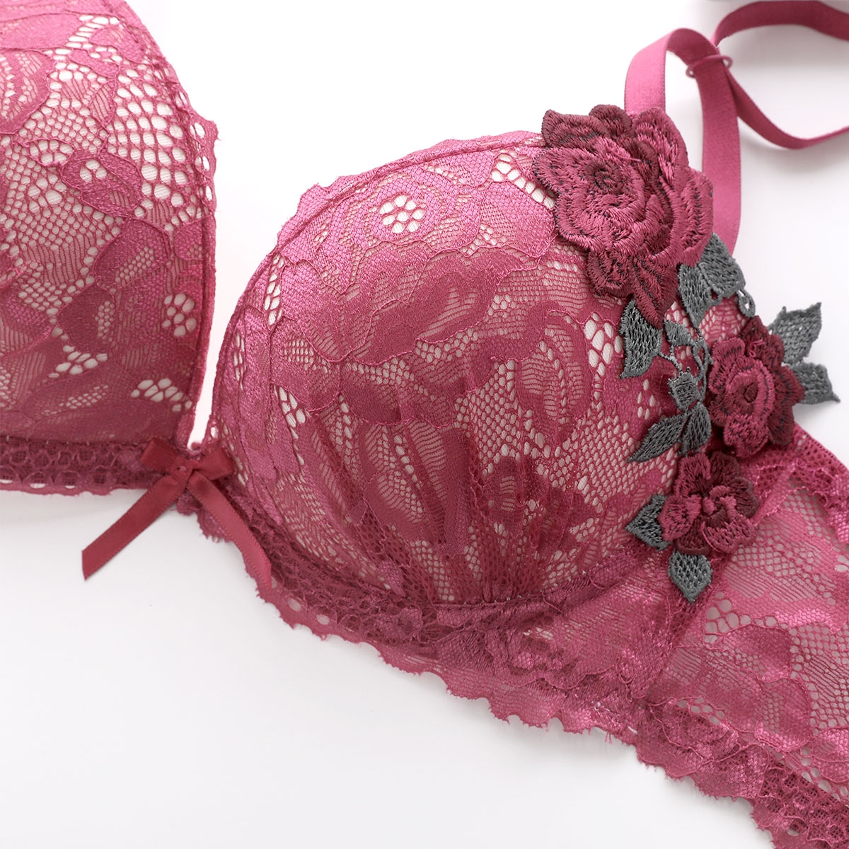 艶やかなローズアップリケの存在感にドラマティックなムード漂うブラセット。