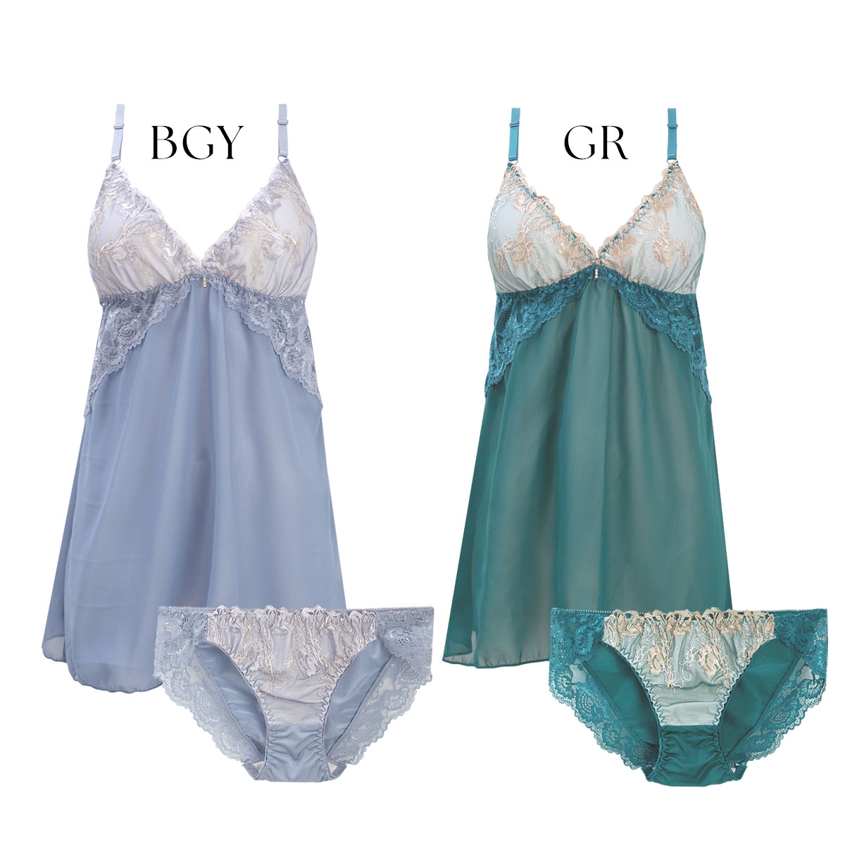 カラーは、深みのある色合いが素肌に映えるグリーンと、優しく女性らしい印象のグレーの2色展開です。