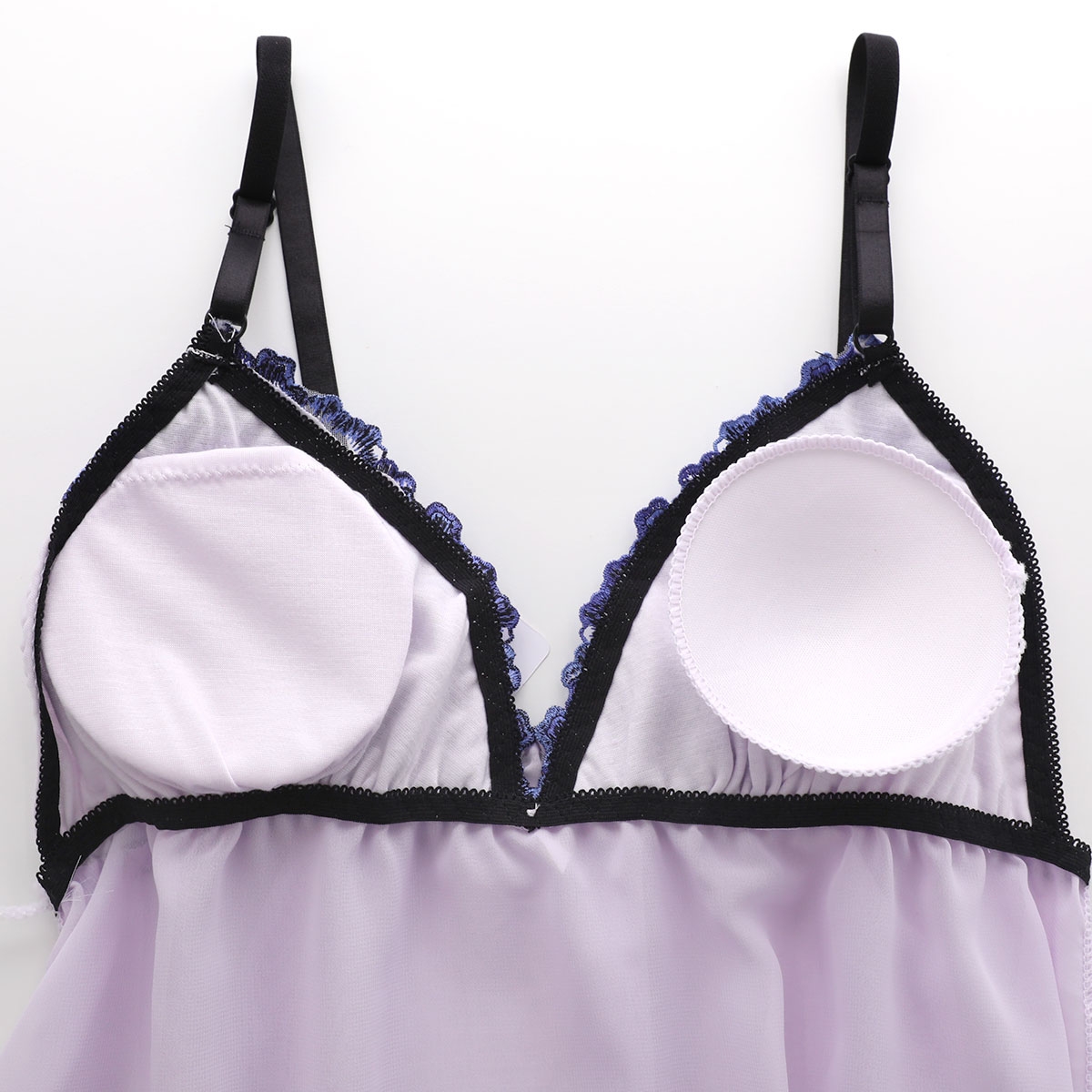 バスト部分は取り外し可能な丸型パッド入りで、スリップ一枚でもご着用いただけます。