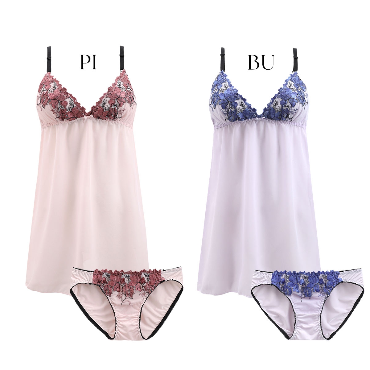 大胆に咲き誇るフラワー刺繍に色香香るスリップ&ショーツセット