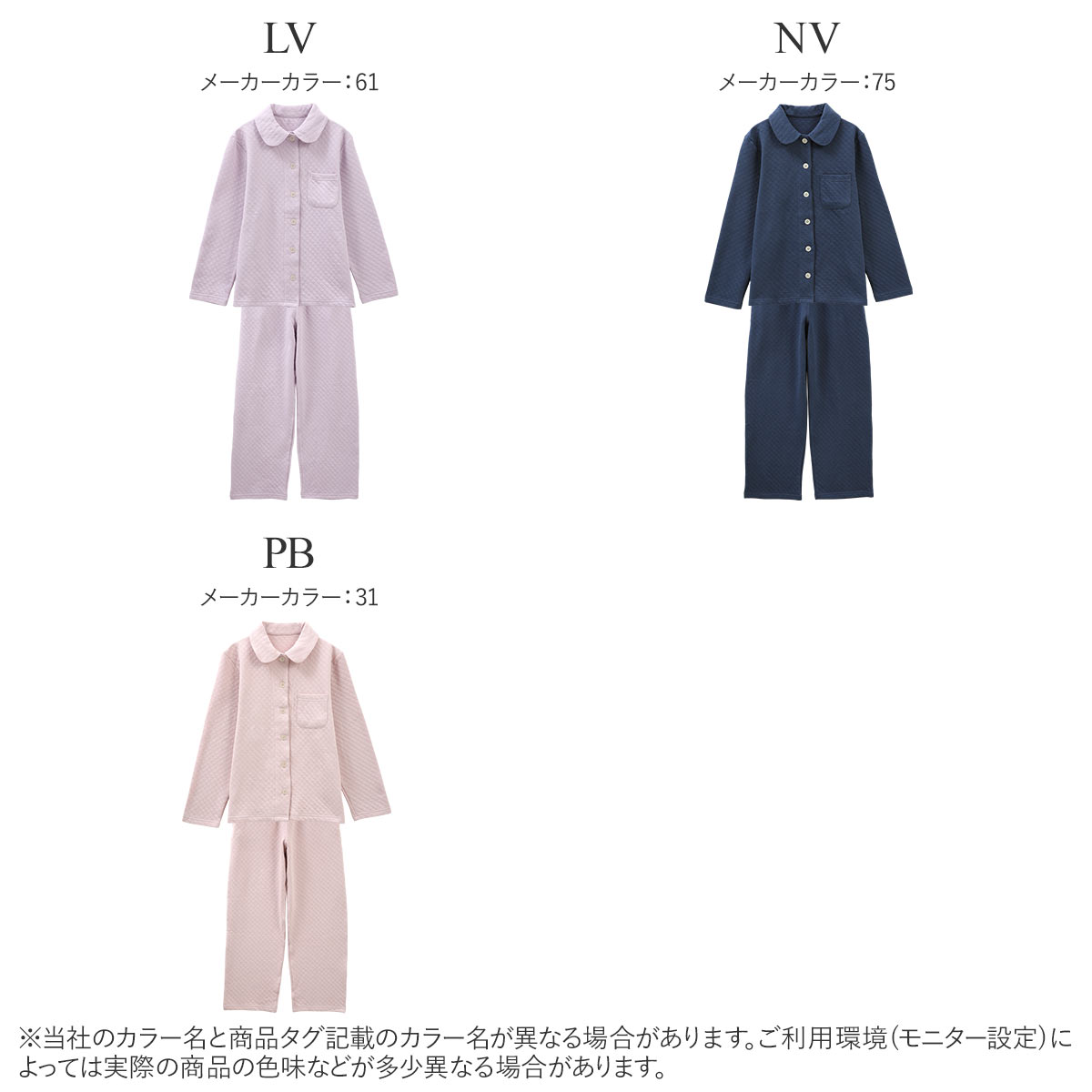 カラーLV-ラベンダー、NV-ネイビー、PB-ピンクベージュ、PI-ピンク