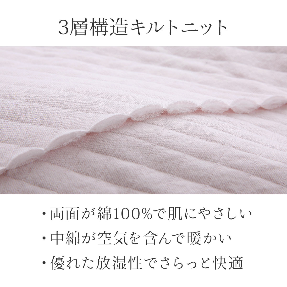 3層構造のキルトニットは生地と生地の間の中綿が空気をたっぷり含み、ふんわり暖かさをキープ。