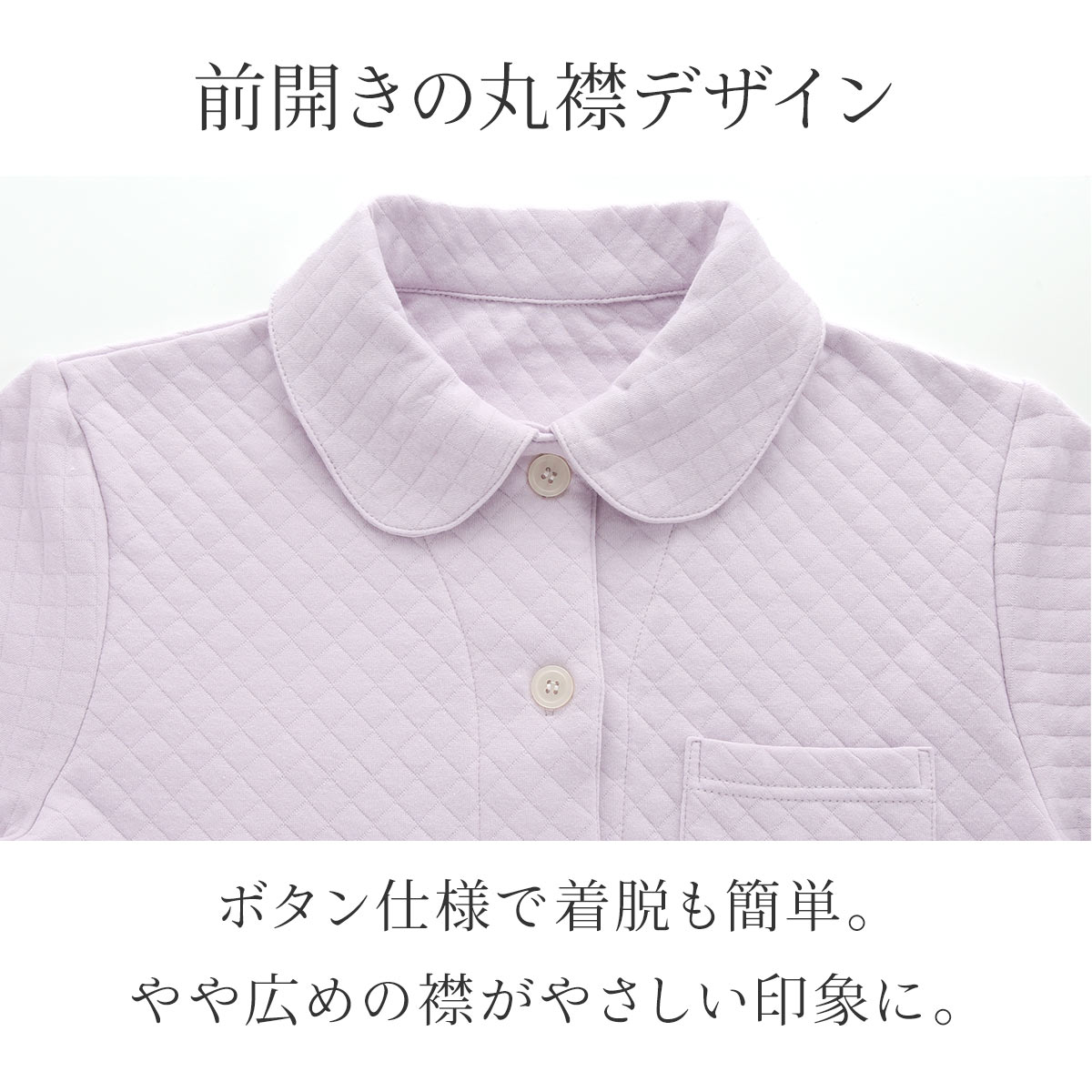 前開きタイプで着脱も簡単なので、ご自宅用や入院着にも。