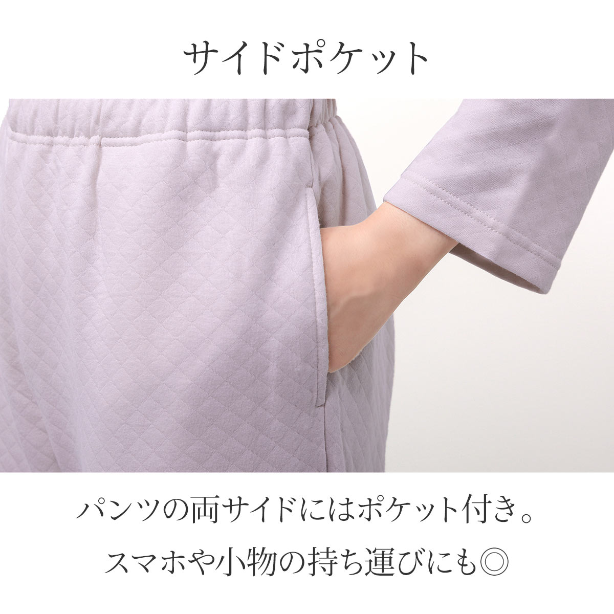 綿100%やわらかキルトニットの前開きパジャマ上下セット。
