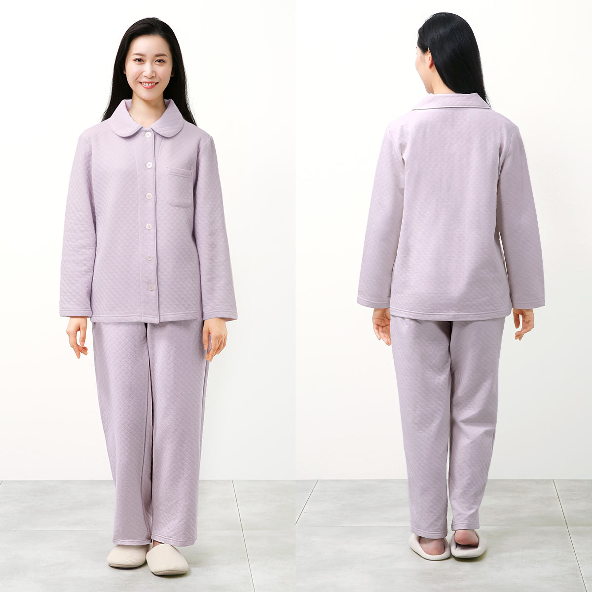 両面が綿100%で柔らかなキルティングの春秋冬用パジャマ