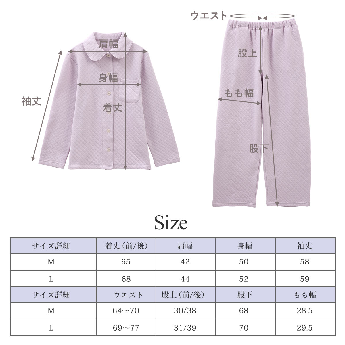 ・股上(前/後):M約30/38cm、L約31/39cm