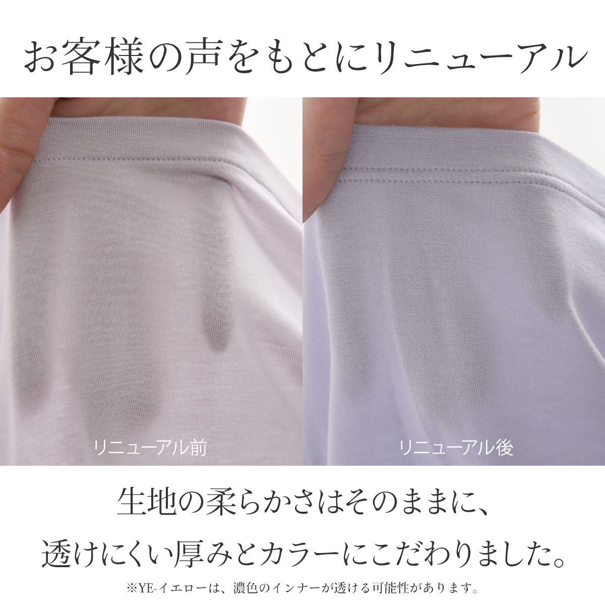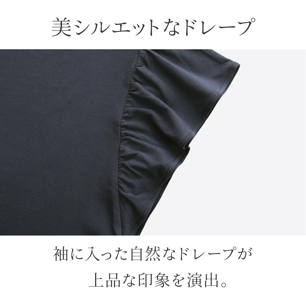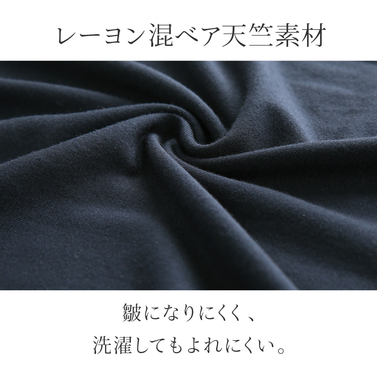 さらりとなめらかな肌あたりのレーヨン混の生地が、ほどよい落ち感とやわらかな風合いでゆったりシルエットをつくります。インナーが透けすぎないように、軽やかさを残しつつも透けにくい厚みにこだわりました。