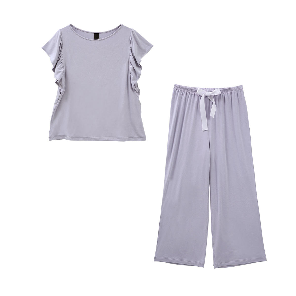 ブルーミングフローラ ルームウェア ゆるっととろみタッチ 上下セット 半袖 ワイドパンツ 春夏秋 bloomingFLORA(GLV-グレーラベンダー-M) SOLDOUT