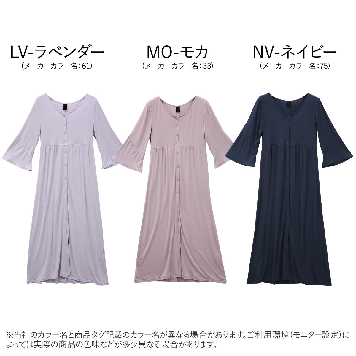 やわらかくストレッチ性のあるとろみ素材がリラクシーな着心地の「ゆるっととろみタッチ」シリーズ。前開きワンピースです。
