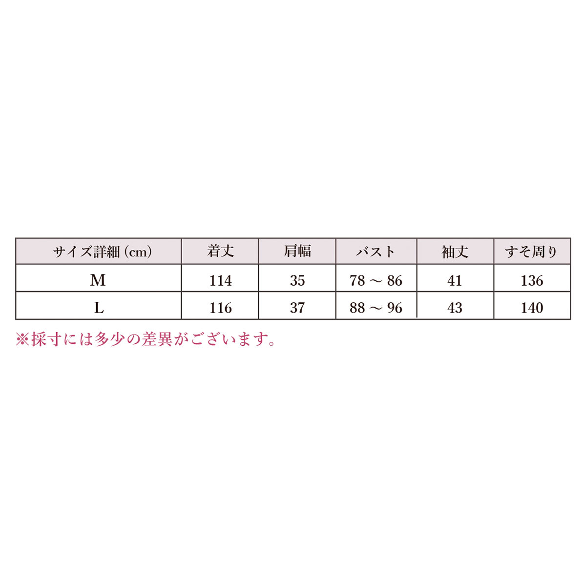 | 仕 様 | ・着丈:(M)約114cm (L)約116cm ・すそ周り:(M)約136cm (L)約140cm