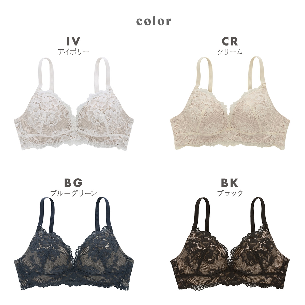 カラーIV-アイボリー、CR-クリーム、BG-ブルーグリーン、BK-ブラック