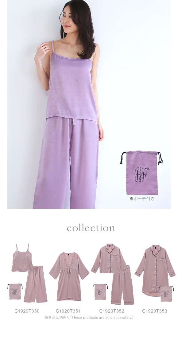 艶感のあるエレガントな光沢で肌に貼りつきにくく、シワになりにくい「ロイヤルサテン」を使用した、適度なとろみのある優しい着用感が特徴のトラベルシリーズ。大人エレガントなニュアンスカラーでまとめました。