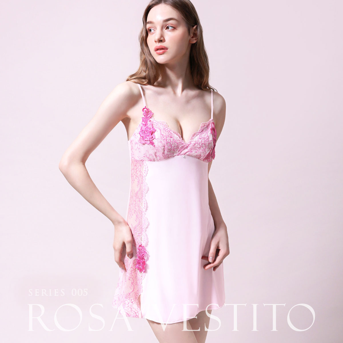 軽やかにドレスを揺らし、幸せに包まれるRosa Vestitoシリーズ。ガラス細工を思わせる透き通った薔薇の花や、カップを巡る繊細なレースがノーブルな印象を与えるデザイン。シンメトリーに配されたシアーアップリケは、花弁の色づきをラメ糸で繊細に表現し、 刹那的な美しさを纏わせます。きらめくストーンは柔らかな光をはらんだ露の輝き。