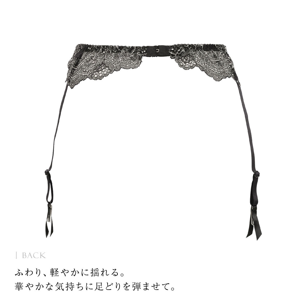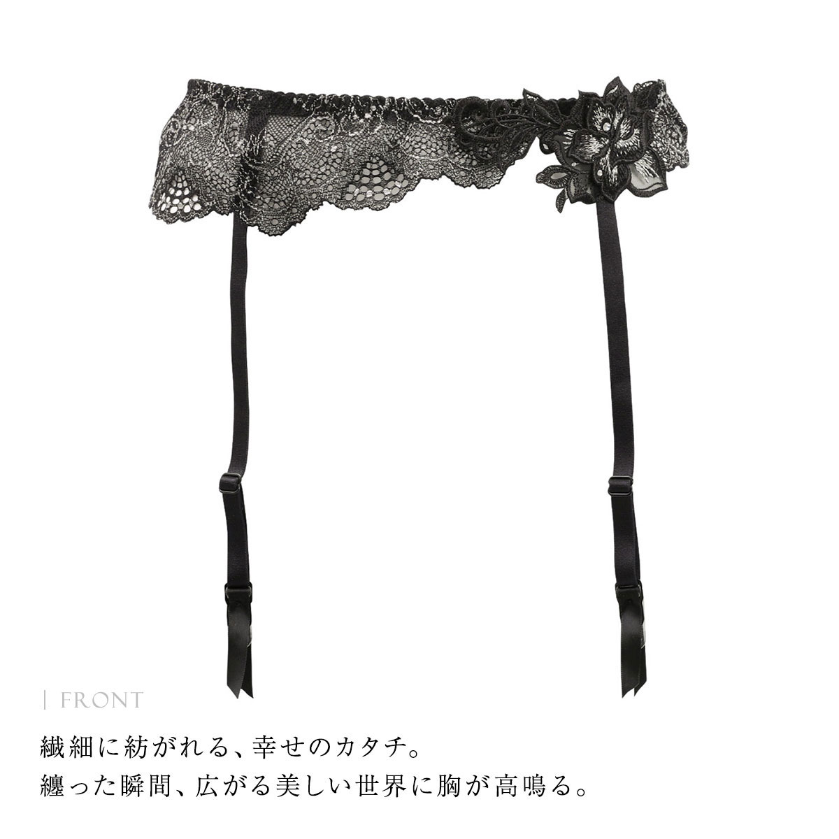 軽やかにドレスを揺らし、幸せに包まれるRosa Vestitoシリーズ。ガラス細工を思わせる透き通った薔薇の花や繊細なレースがノーブルな印象のガーターベルト。繊細なレースがふわりとウエスト周りを彩る姿は、まるでドレスを纏うように華やかな表情を浮かべます。
