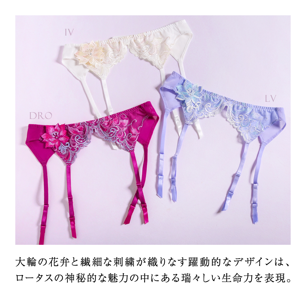 美しく花開く瞬間を描いたアップリケと、儚く水面に浮かぶ花弁を描いた刺繍レース。2つの表情が織りなす躍動的なデザインは、ロータスの神秘的な魅力の中にある瑞々しい生命力を表現。