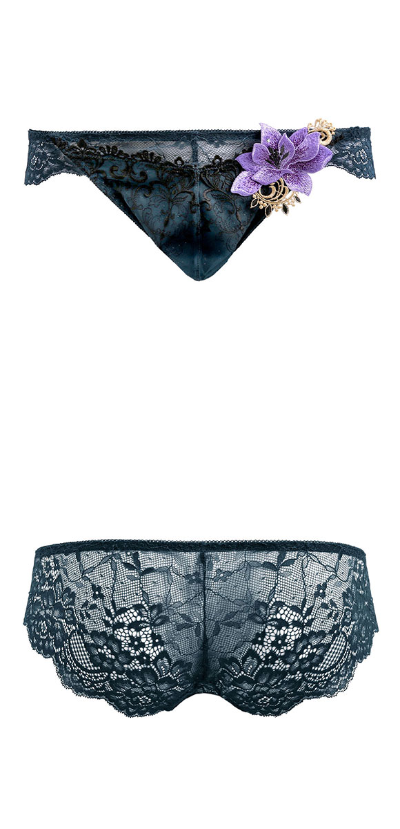 アウターにひびきにくく、ヒップに食い込みにくいバックレース仕様のメンズブリーフ。フロントは透けにくい裏打ち付き。やわらかく伸縮性のあるストレッチレースがやさしく包み込む心地良い着用感です。