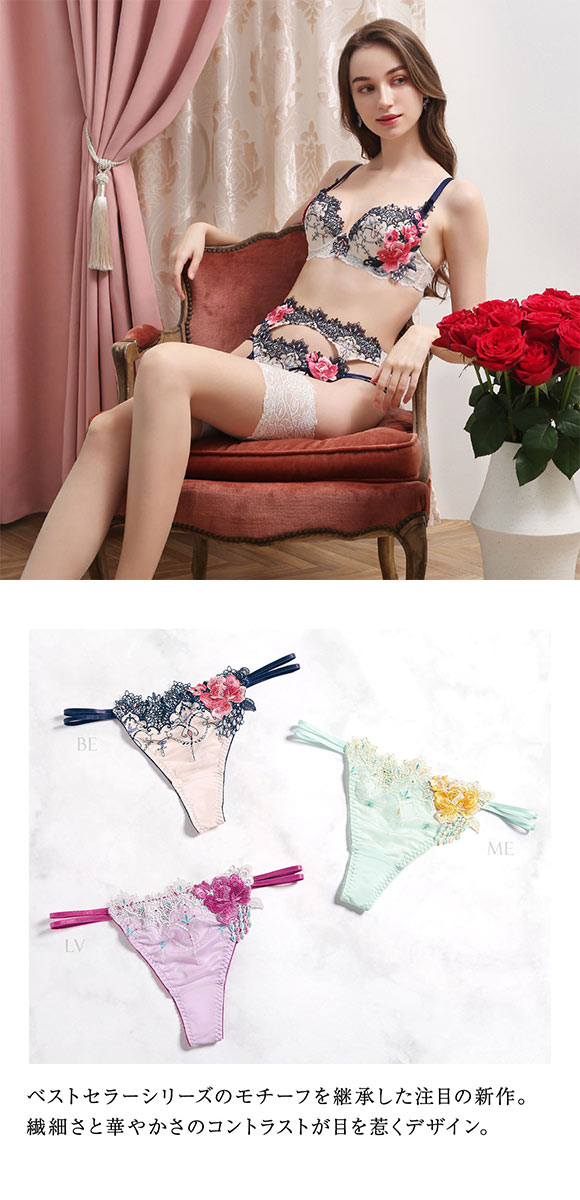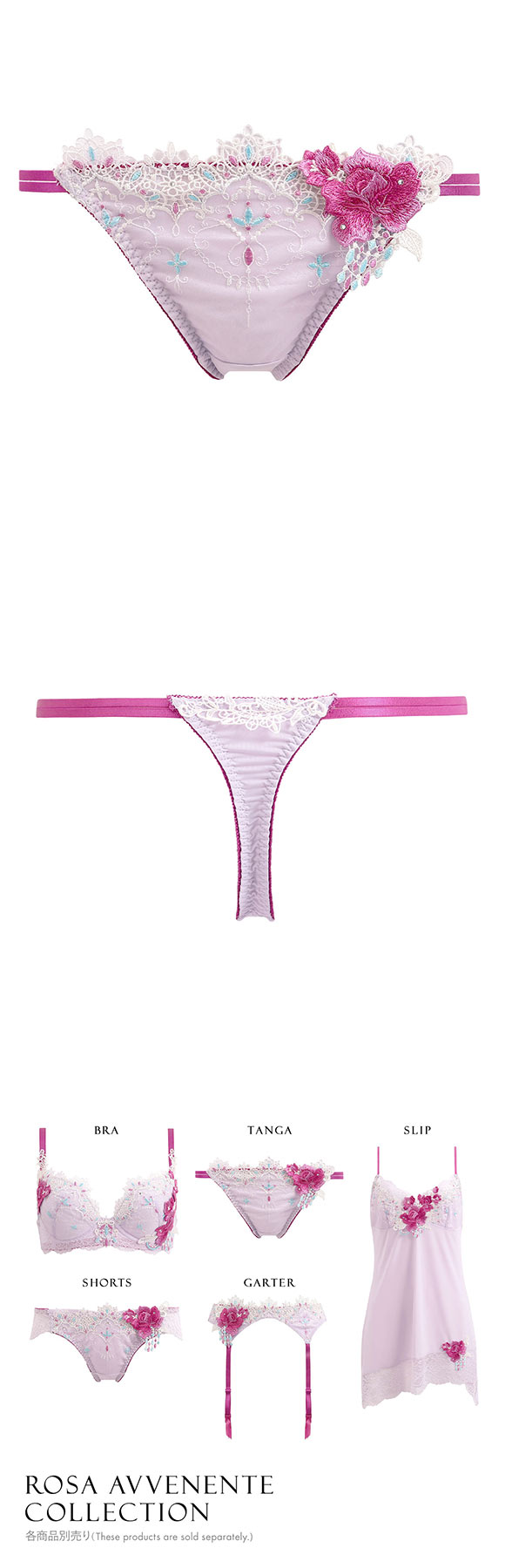 アウターにひびきにくく、ヒップラインをなめらかに魅せるTバックショーツ。フロントは透けにくい裏打ち付きです。サイドのダブルストリングとバックのアップリケでセクシーな華やかさを演出。