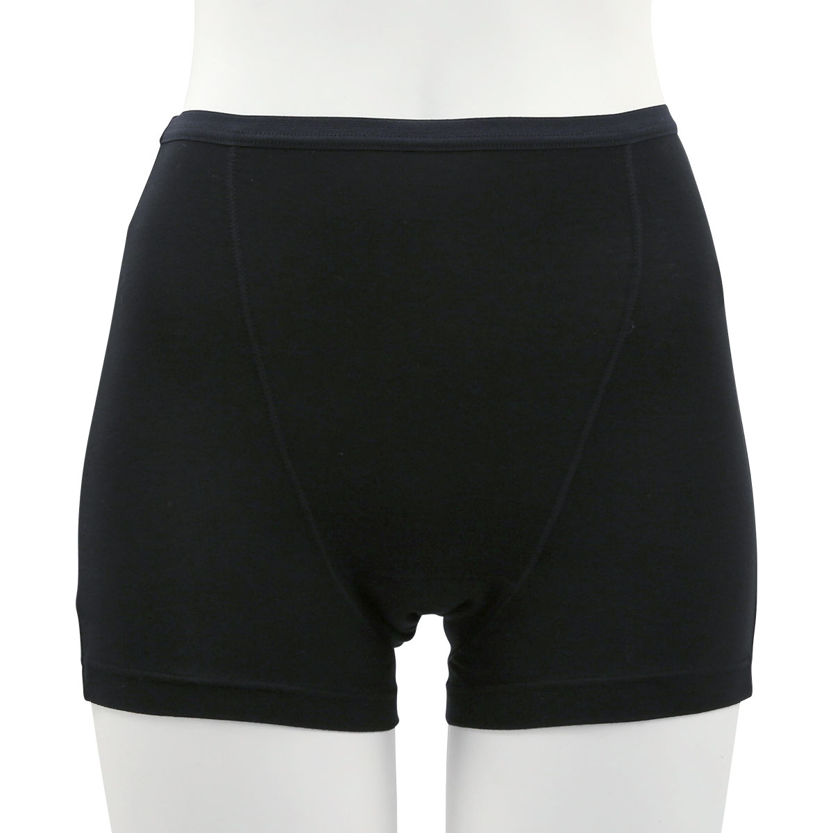 2WAY(縦横伸び)レーヨンベア天竺なのではき心地は安心のフィット感です。1分丈の足口が折り返し仕様なのでソフトにしっかりホールドします。生理初期・終了期の経血不安を吸水パットと二重防水シートがしっかりガードします。多い日の不安解消に羽根ナプキン対応の浮きマチ構造。透湿防水布と吸収拡散メッシュがムレ・べとつきを軽減します。消臭性能の有る吸水布(ベルオアシス)を使用しています。吸水量30cc。(公的機関調べ)