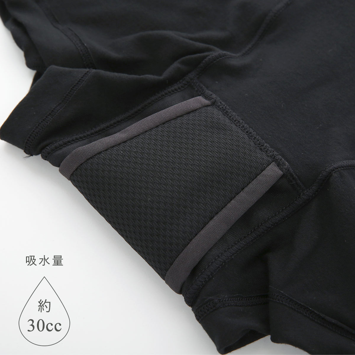 吸水サニタリー一分丈ショーツ 生理用 フェムテック 日本製 抗菌消臭 吸水量30CC 単品(BK-ブラック-S) SOLDOUT