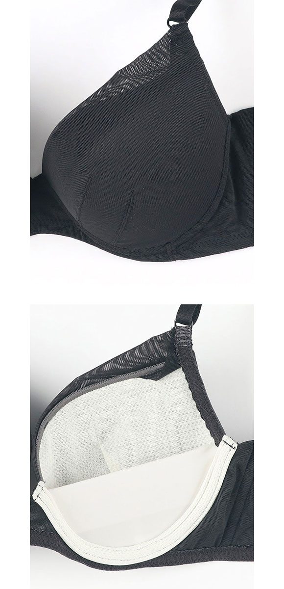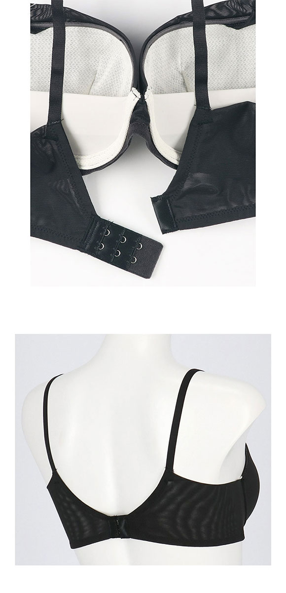 二枚の生地が面でささえるバック設計なので、しめつけ感を軽減。