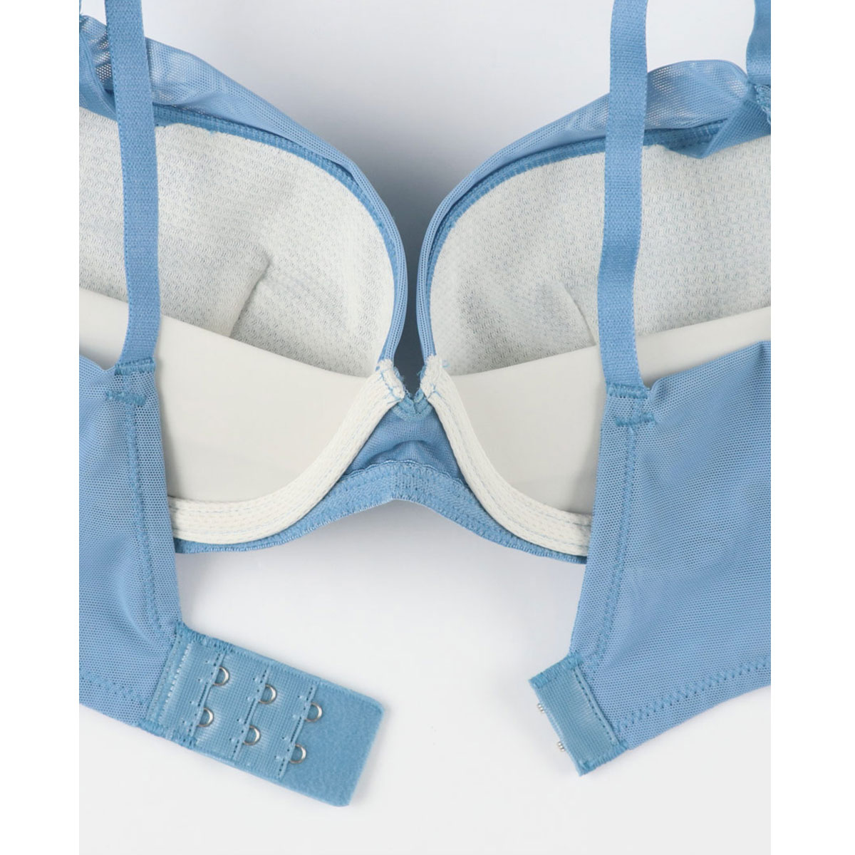 二枚の生地が面でささえるバック設計なので、しめつけ感を軽減。