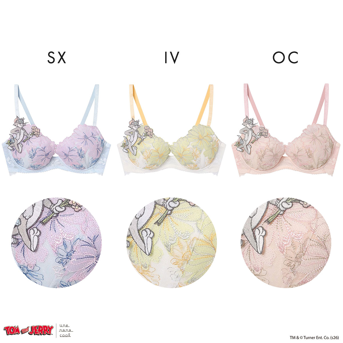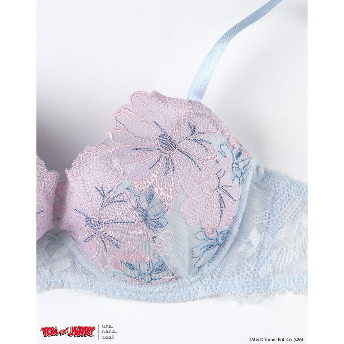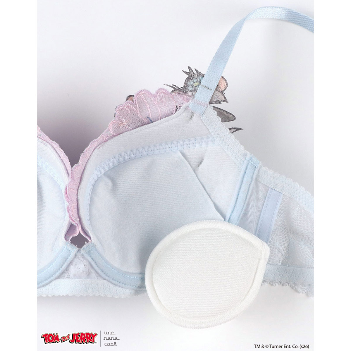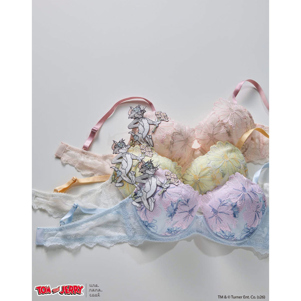 ネコのトムを大胆なアップリケで表現した「トムとジェリー」コラボのブラジャー。