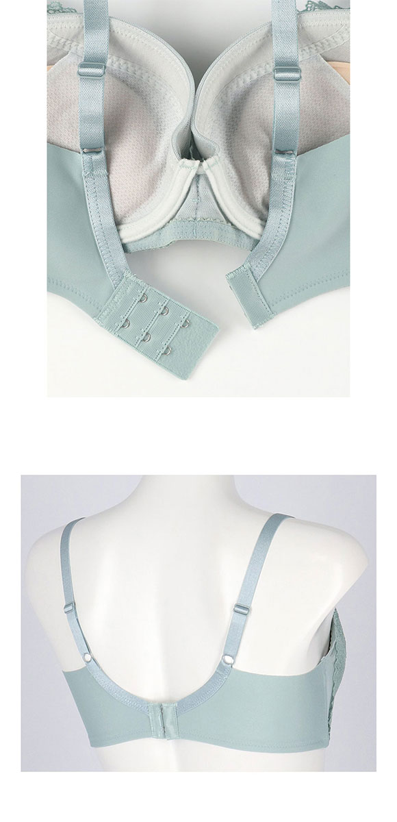 脇高設計による幅の広い脇布でハミ肉をキャッチし、しっかり収めることでバストサイドのラインをすっきりととのえる。
