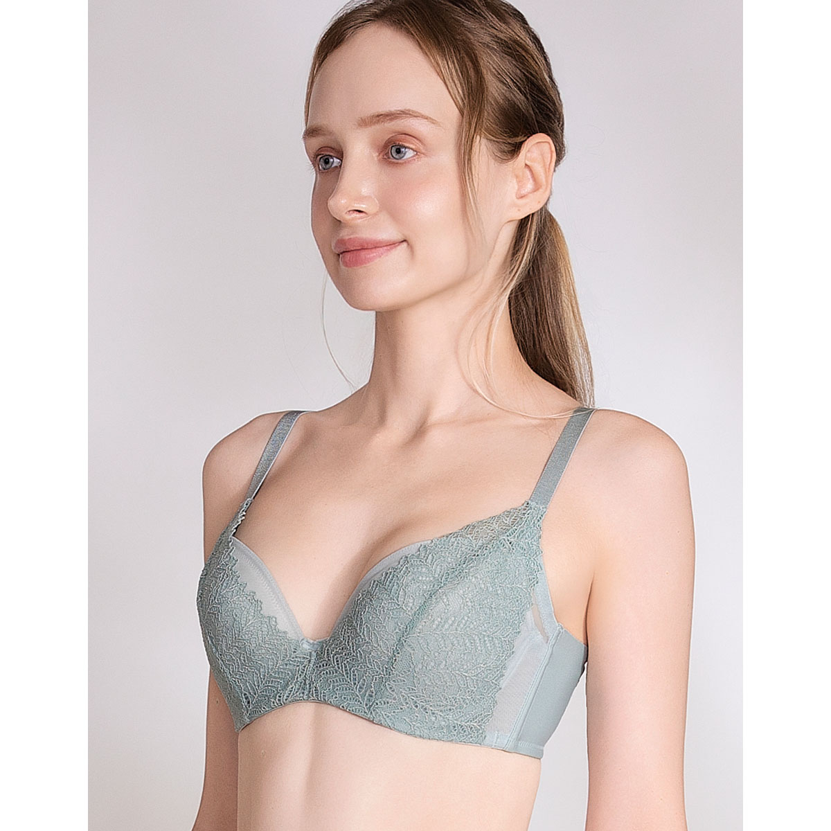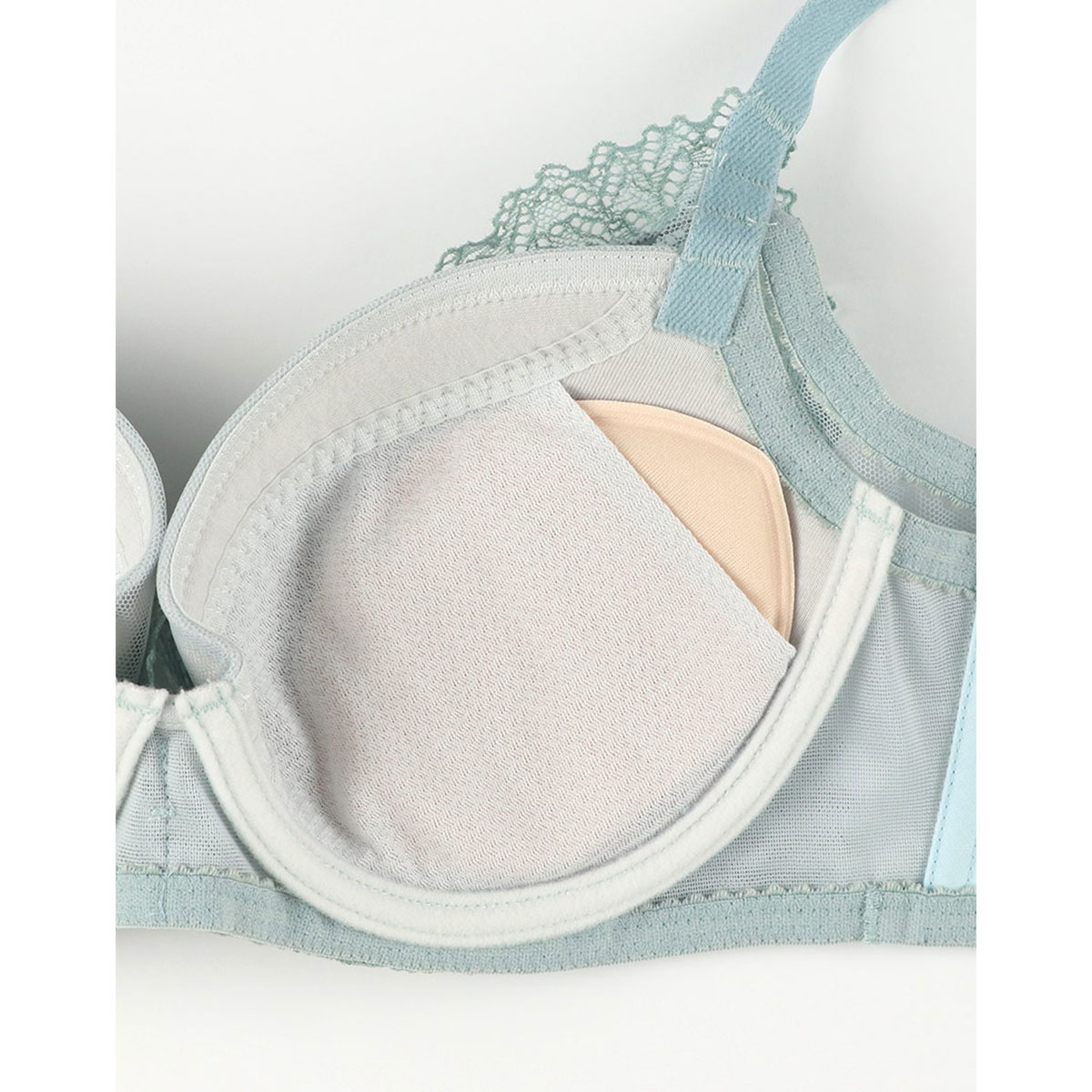 表レースの下に内蔵されたカップ脇布で程よくサポート。