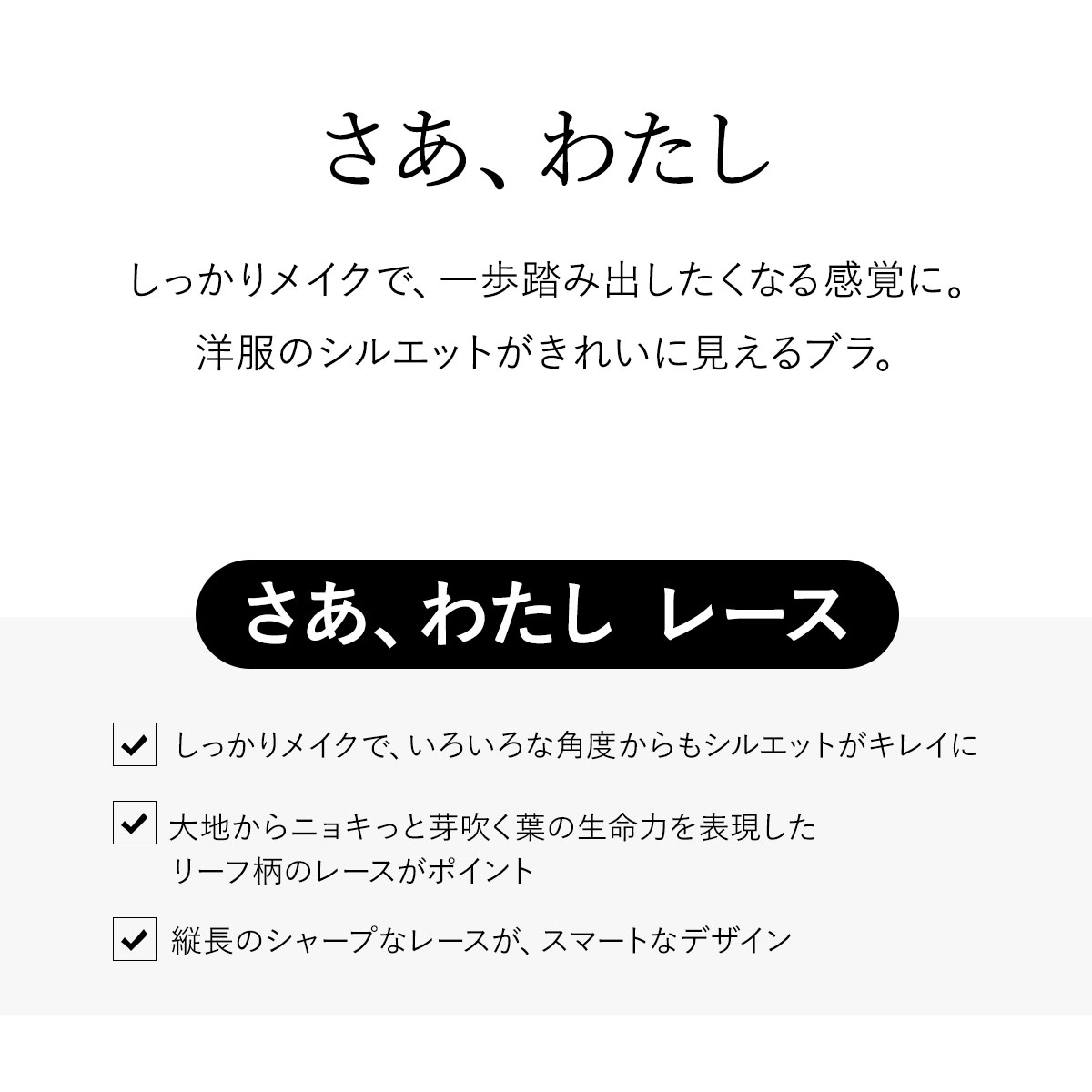 アウターシルエットが綺麗になる事で、自分に自信が湧き、一歩踏み出したくなる感覚になる『さあ、わたし』。