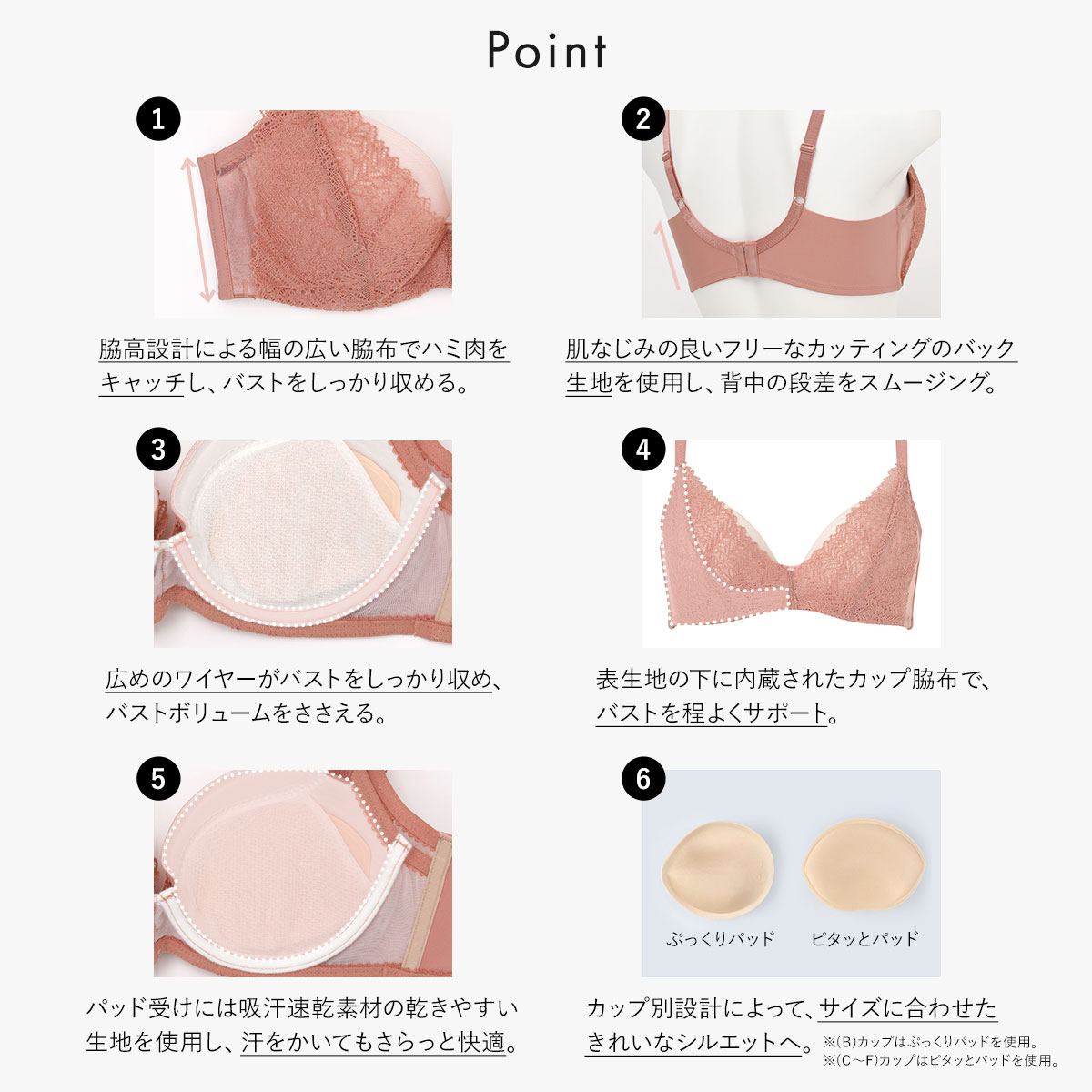 (C~F)カップはピタッとパッドを使用。