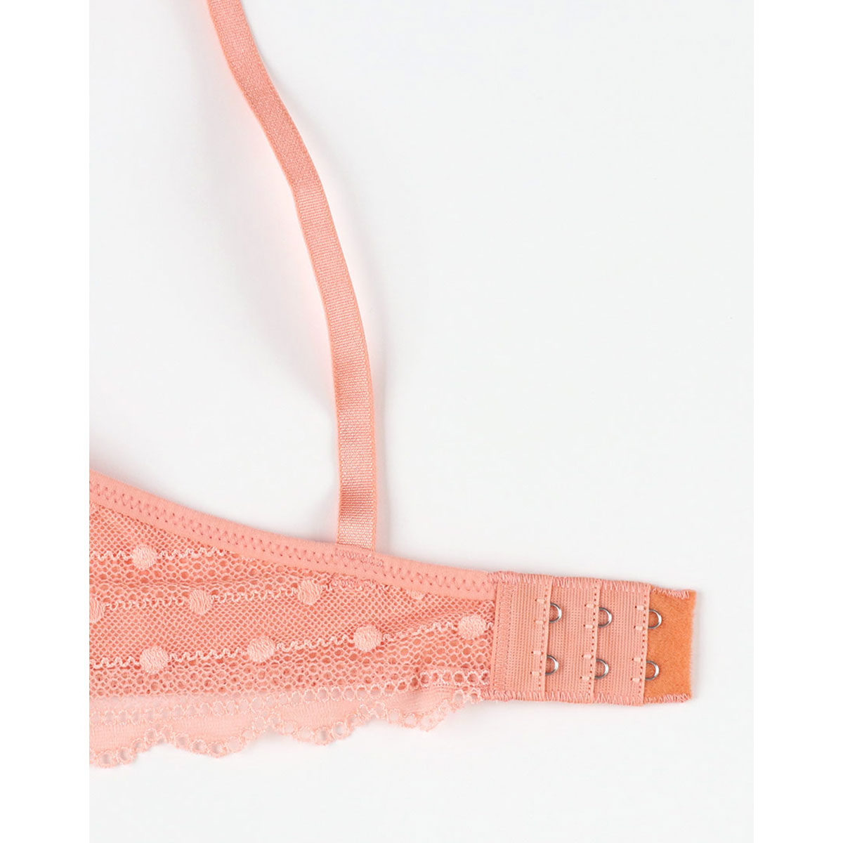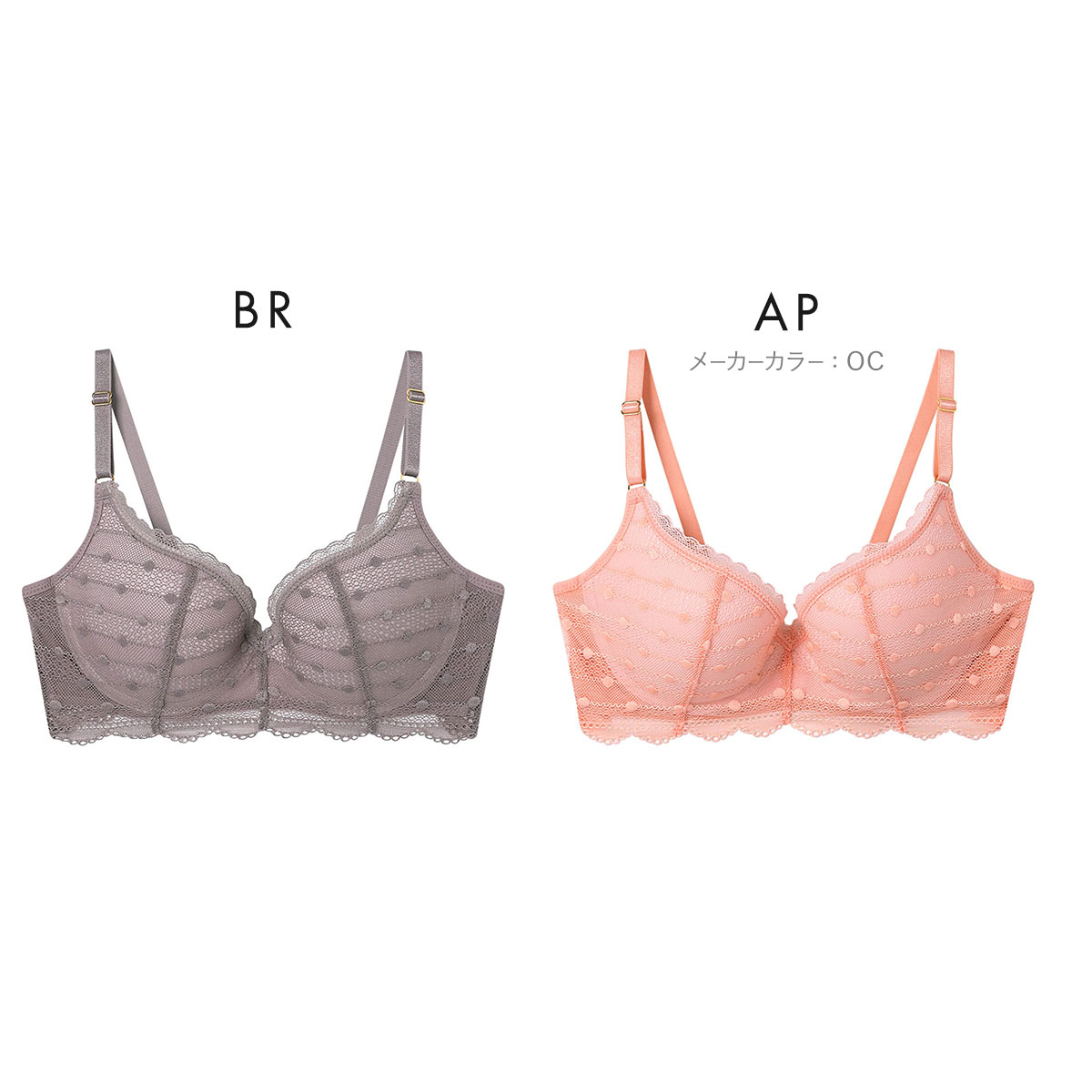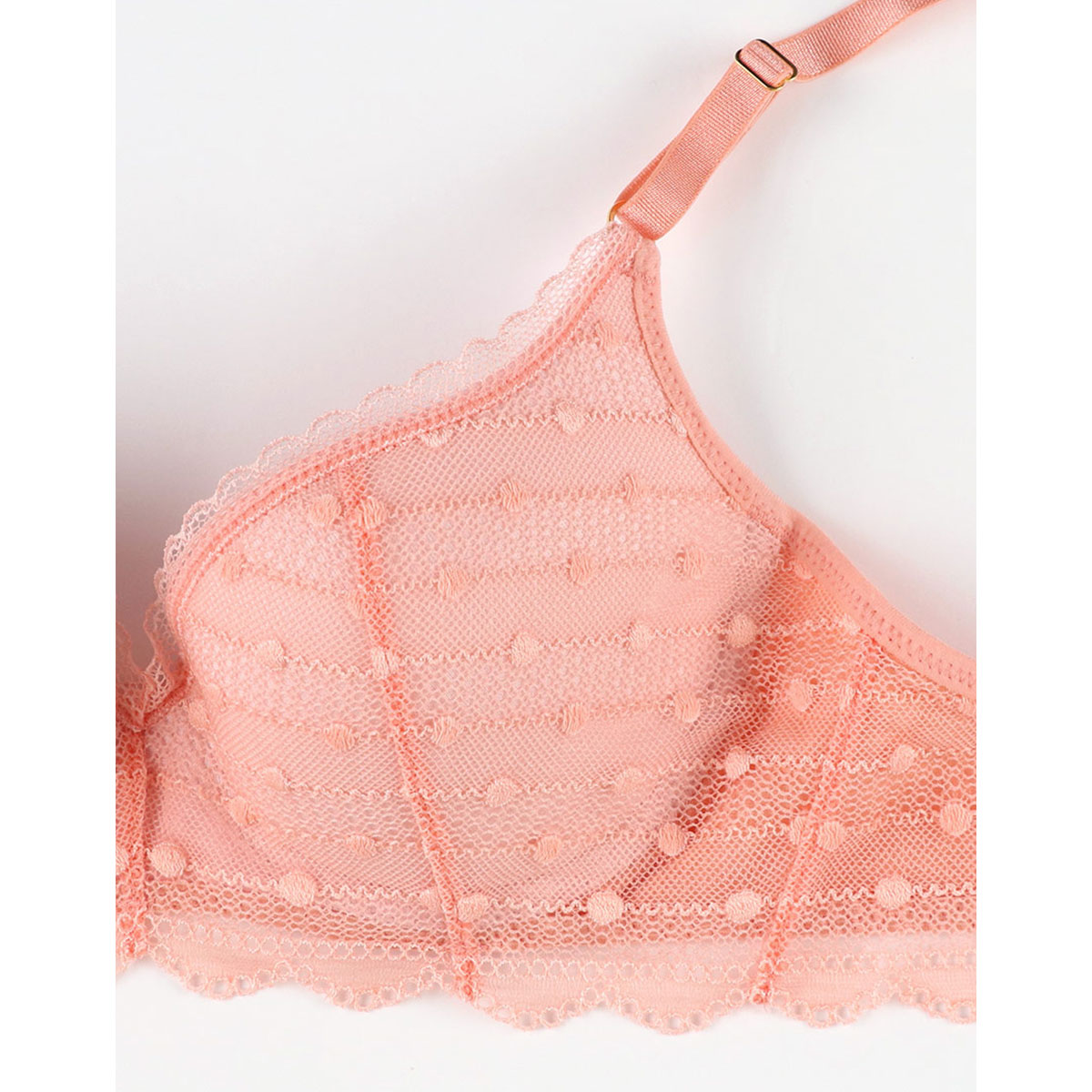 ・ドット柄のレースを使用したカジュアルフェミニンなデザインのブラジャー。