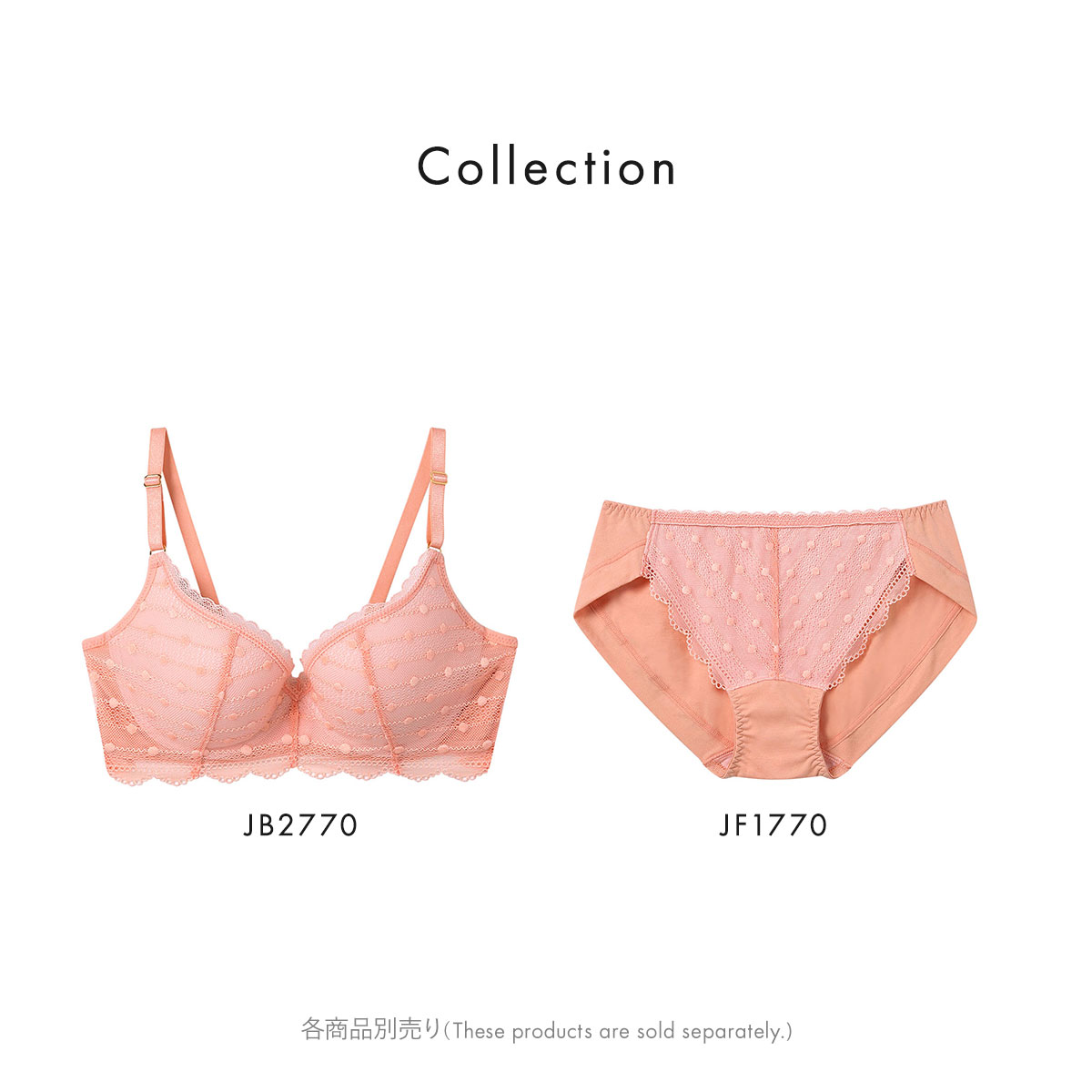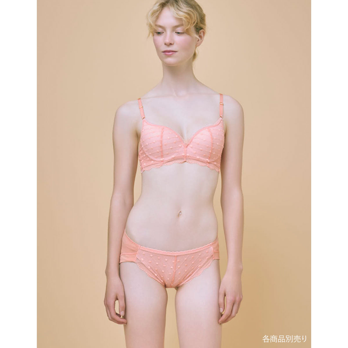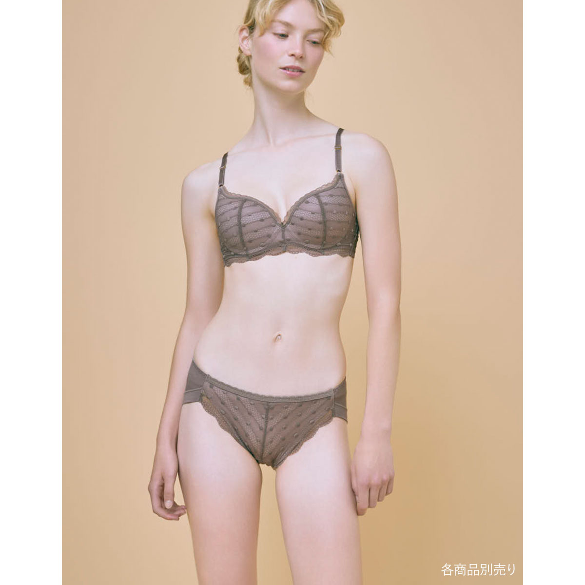 ・ドット柄のレースを使用したカジュアルフェミニンなデザインのブラジャー。