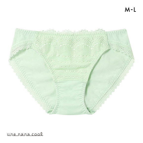 ・雨粒をイメージしたドット柄と、流れを感じるアーチ柄を組み合わせ、軽快な印象に仕上げたレースを使用したデザインのセットショーツ。